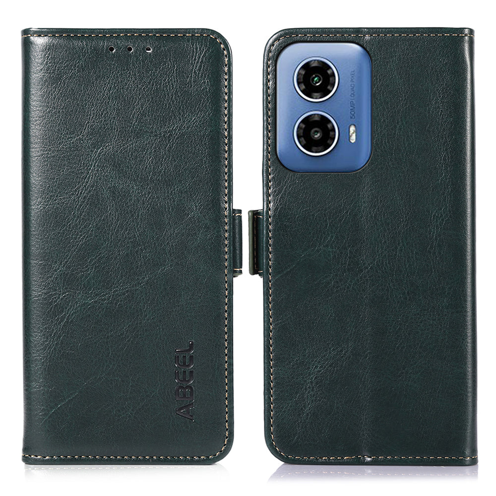ABEEL For Motorola Moto G34 5G Wallet Case Side Magnetic Clasp Crazy Horse Texture Phone Cover