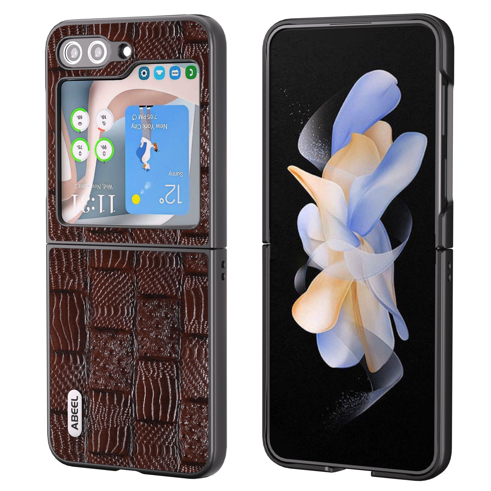 ABEEL til Samsung Galaxy Z Flip5 5G Mahjong Texture telefonetui Ægte ko læder belagt PC stødsikkert cover