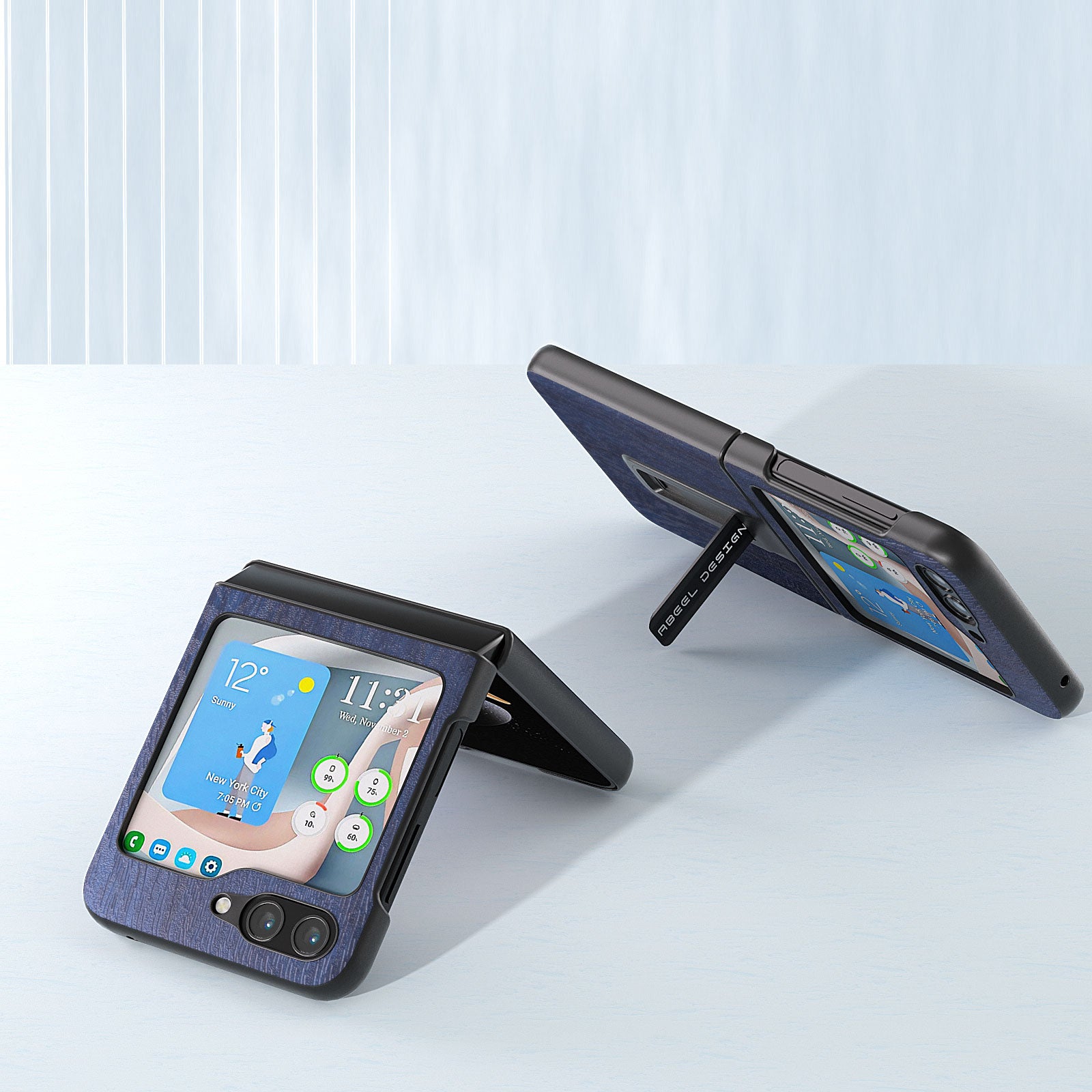 ABEEL Til Samsung Galaxy Z Flip5 5G Wood Texture Bagcover PU Læder PC Kickstand telefoncover