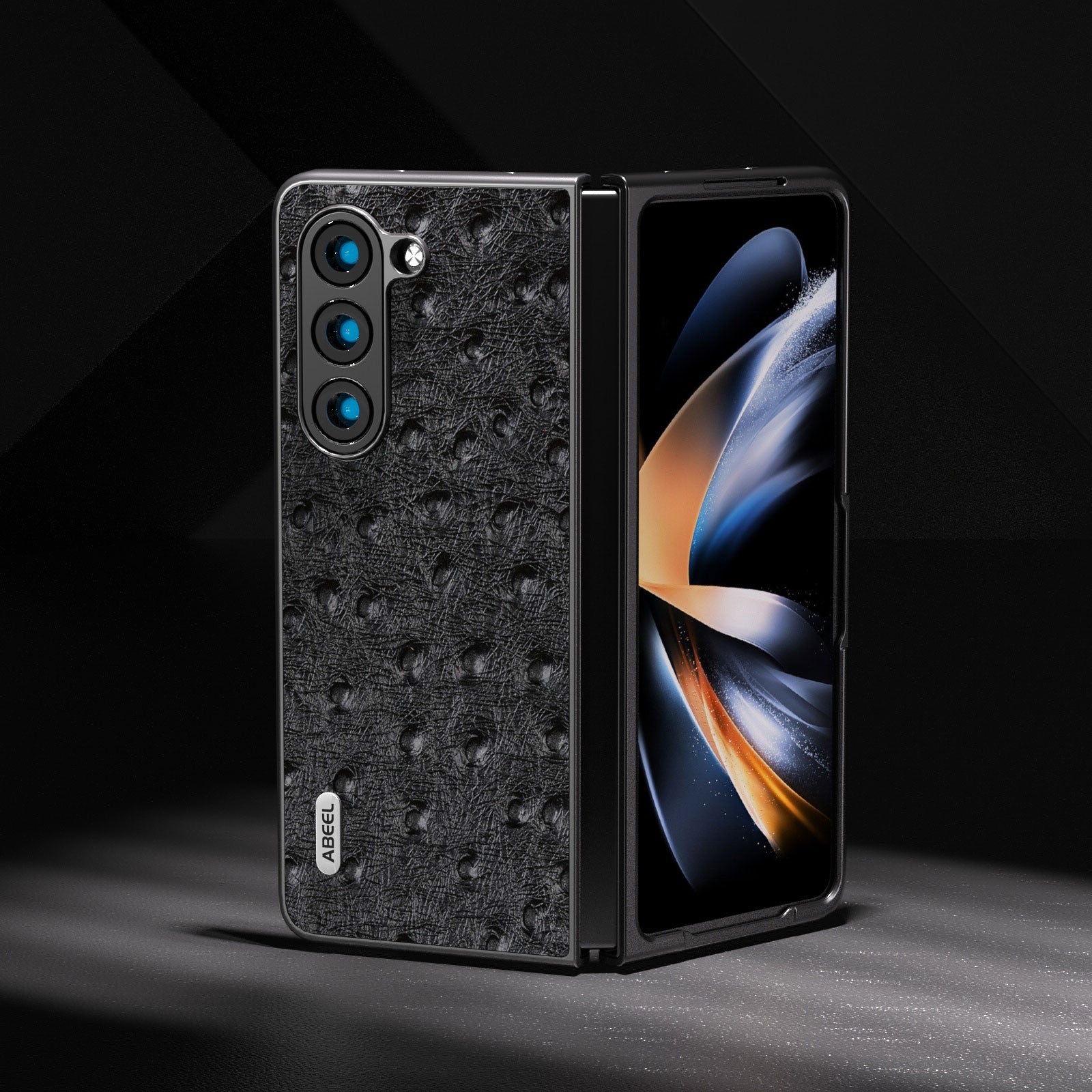 - ABEEL til Samsung Galaxy Z Fold5 5G struds tekstur telefon taske ægte ko læder pc foldecover ABEEL til Samsung Galaxy Z Fold5 5G struds tekstur telefon taske ægte ko læder pc foldecover