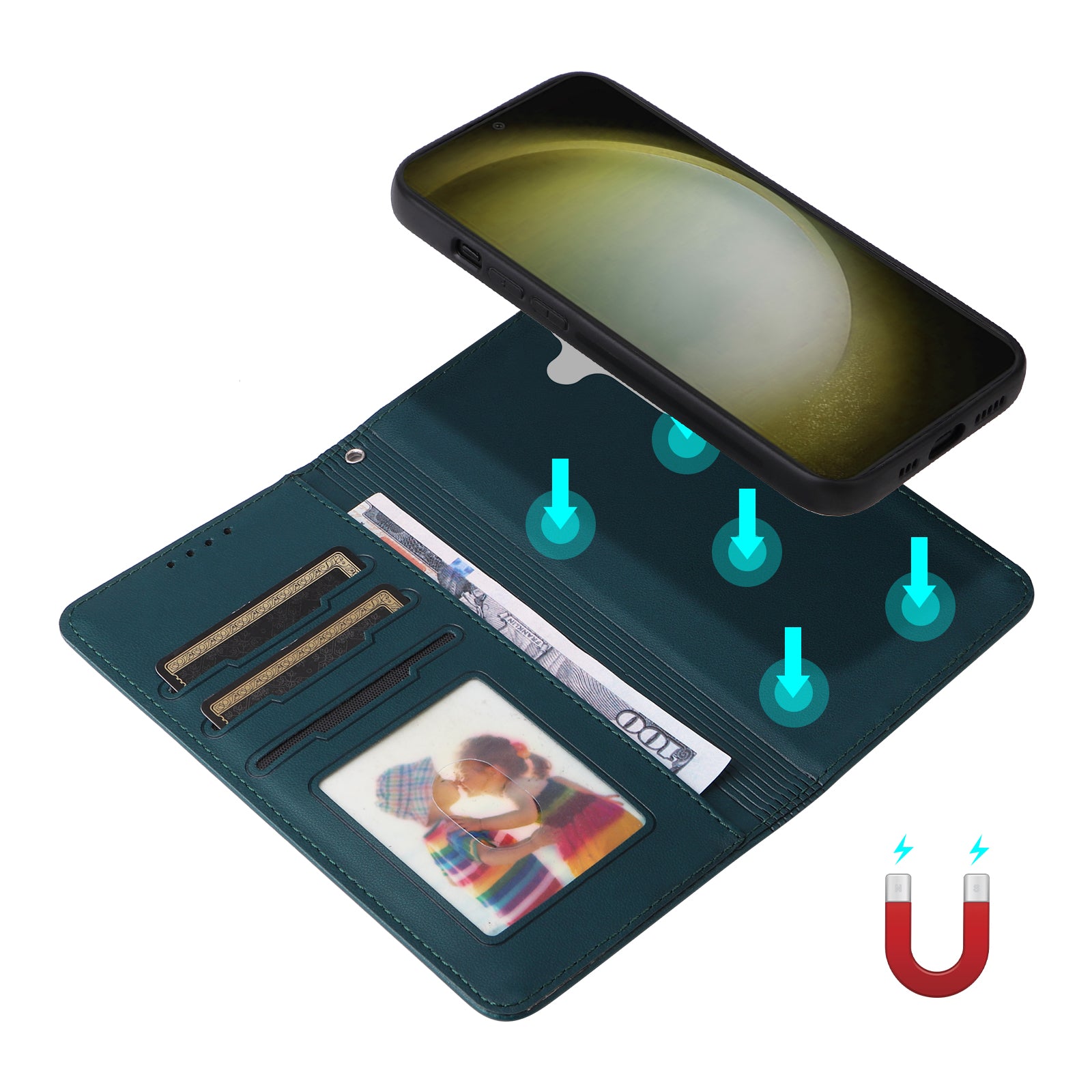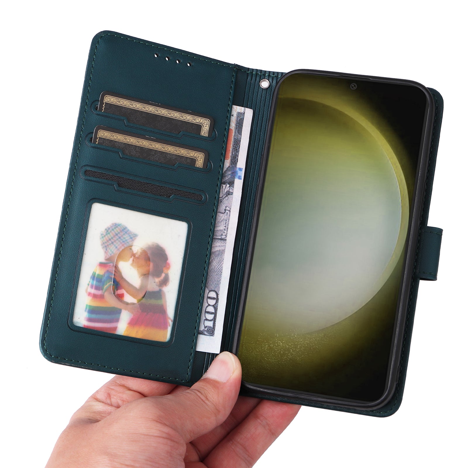- Wallet design, 1 photo slot + 2 card slots + 1 cash pocket to manage your cards and cash without messy