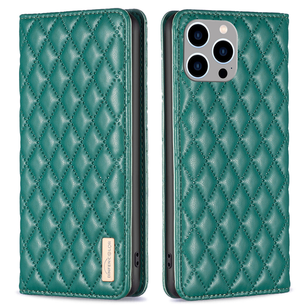 BINFEN COLOR BF Style-16 Til iPhone 15 Pro Max PU Læder Flip Stand Cover Kortholder Telefon Etui