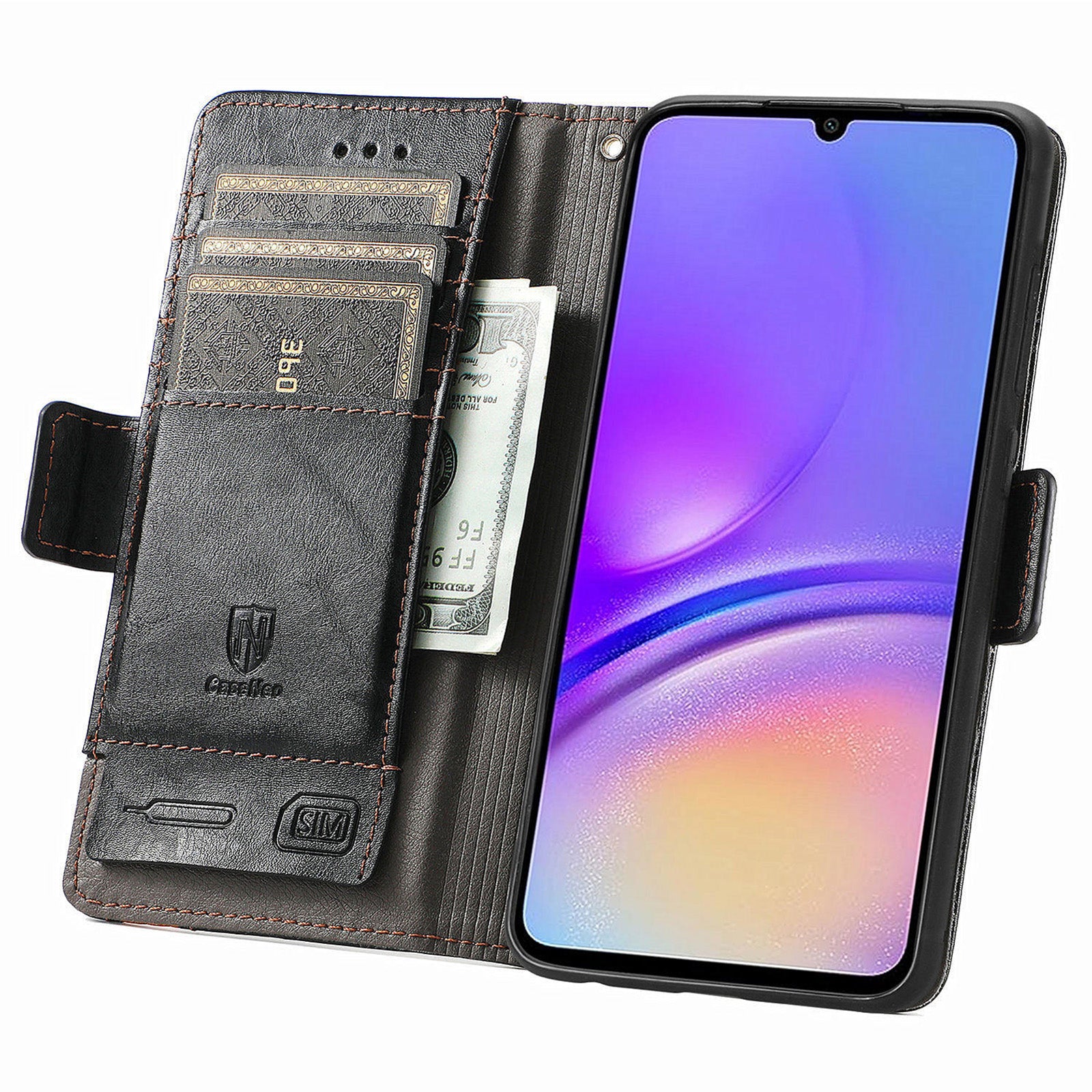 - Wallet design, comfortably fits cards plus cash, also can store a SIM card and an ejector pin