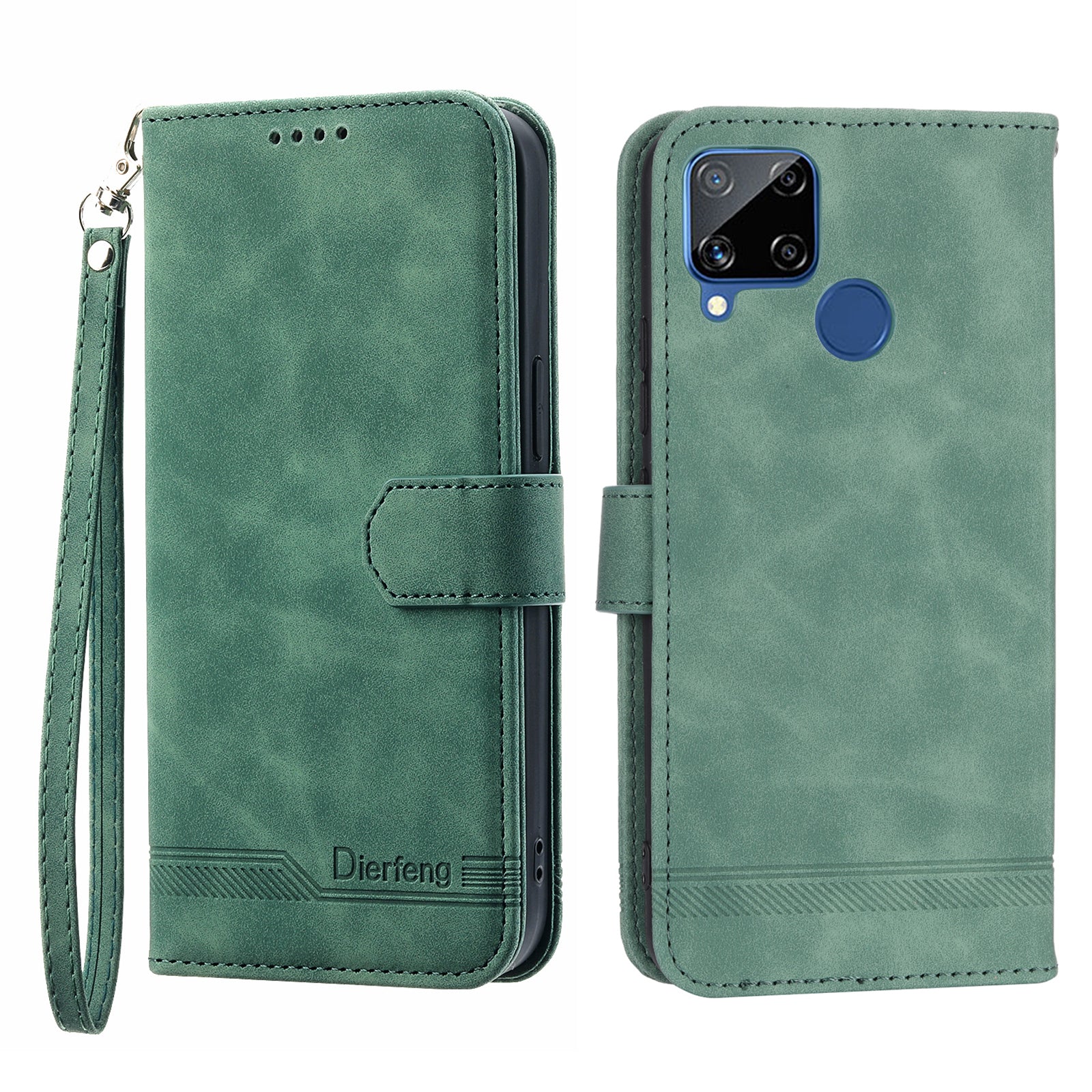 DIERFENG DF-03 Pungtelefontaske til Realme C25 C15 C12 Lines påtrykt PU-læderstativ smartphonecover