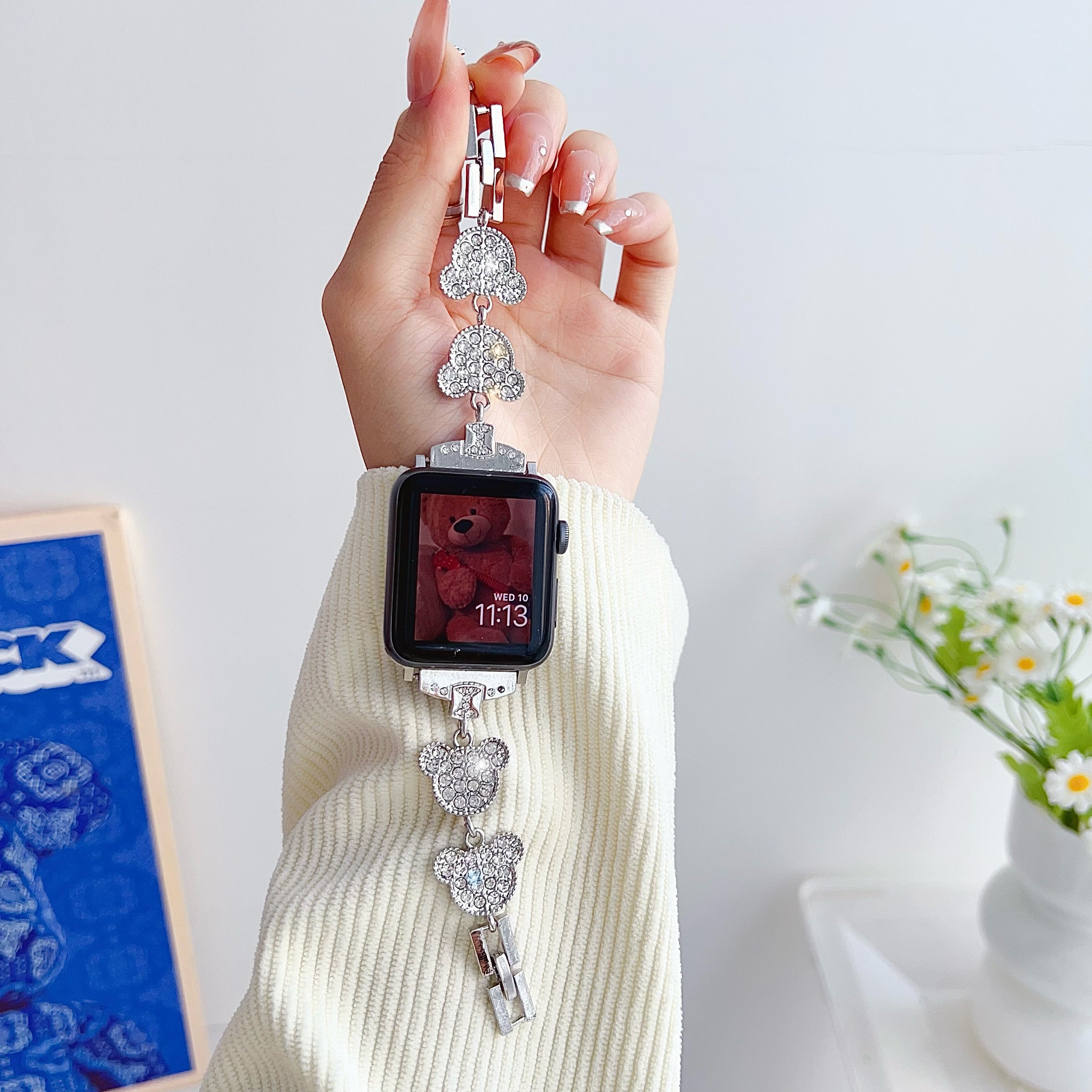 - For Apple Watch 9 8 7 41mm / SE (2022) SE (2023) SE 6 5 4 40mm / 3 2 1 38mm Wrist Watch Band - Bear Head+Black Rhinestone For Apple Watch 9 8 7 41mm / SE (2022) SE (2023) SE 6 5 4 40mm / 3 2 1 38mm Wrist Watch Band - Bear Head+Black Rhinestone
