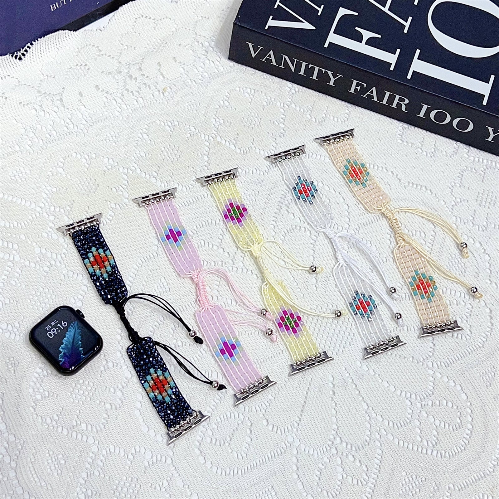 - For Apple Watch Series 9 8 7 41mm / 6 5 4 SE (2023) SE (2022) SE 40mm / 3 2 1 38mm Strap Nylon+Beads Woven Watch Band - Black For Apple Watch Series 9 8 7 41mm / 6 5 4 SE (2023) SE (2022) SE 40mm / 3 2 1 38mm Strap Nylon+Beads Woven Watch Band - Black