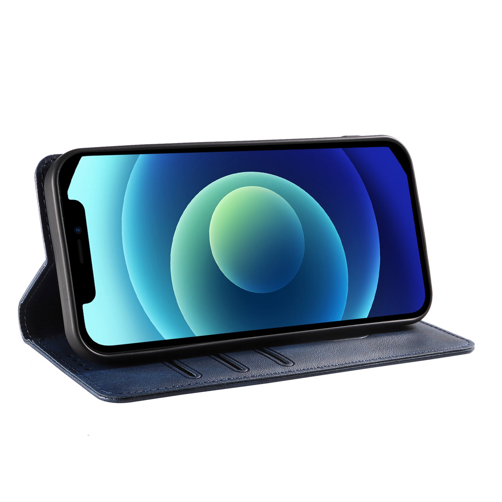 For iPhone 12 12 Pro 6.1 inch Anti-Scratch Phone Case Wallet Magnetic Leather Stand Calf Texture Phone Cover