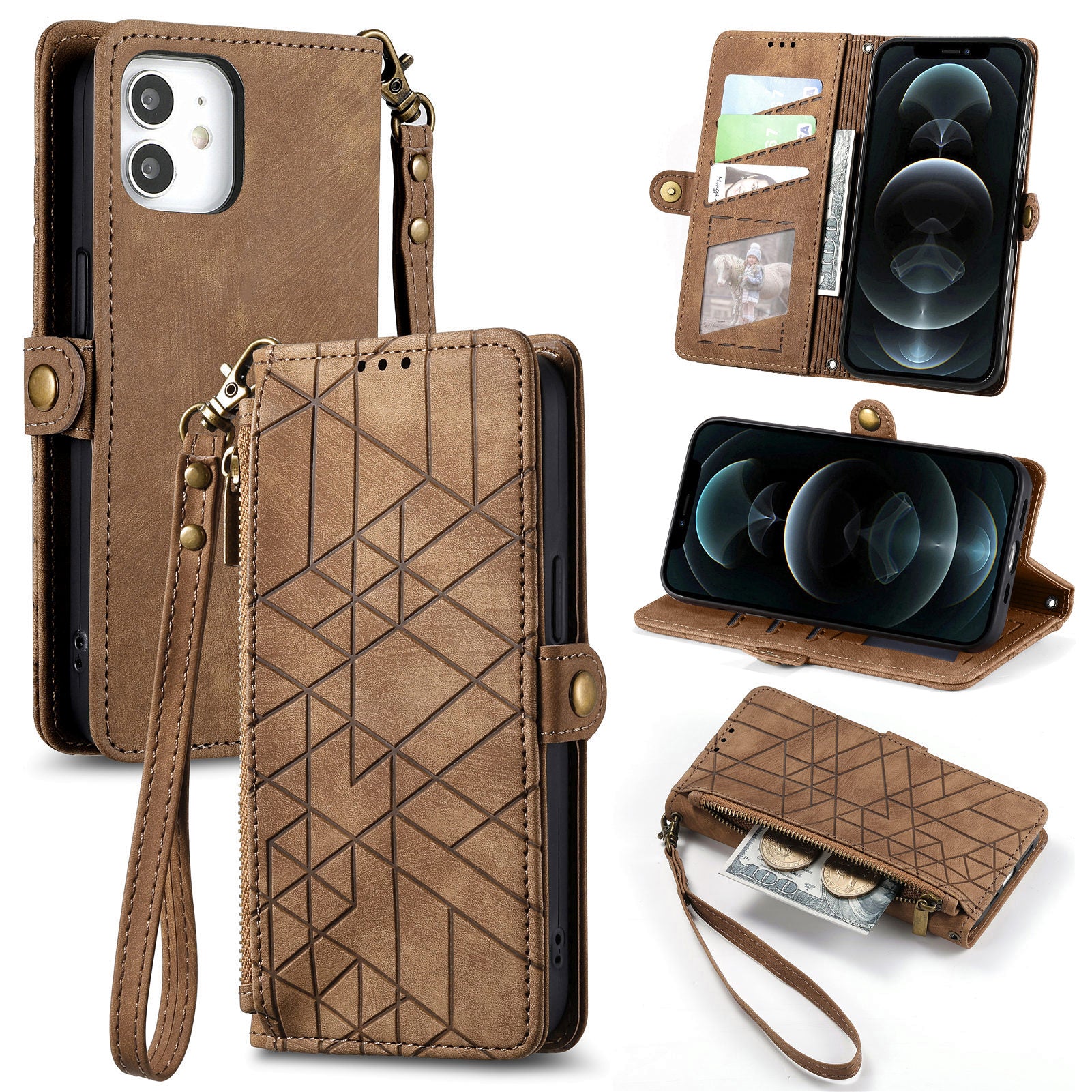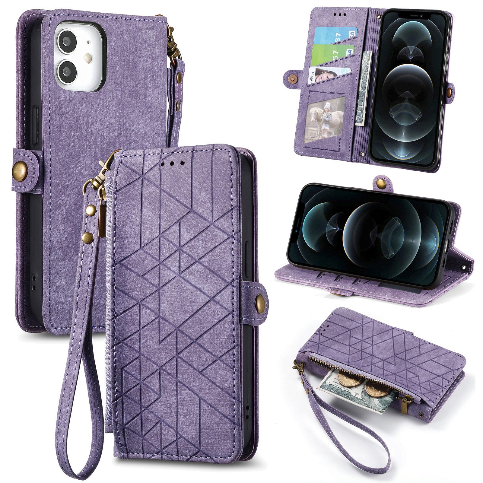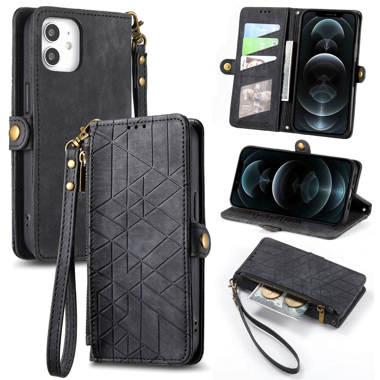 - Til iPhone 12/12 Pro PU-læderstativ Lynlåslomme Telefonetui Geometri præget tegnebogscover Til iPhone 12/12 Pro PU-læderstativ Lynlåslomme Telefonetui Geometri præget tegnebogscover