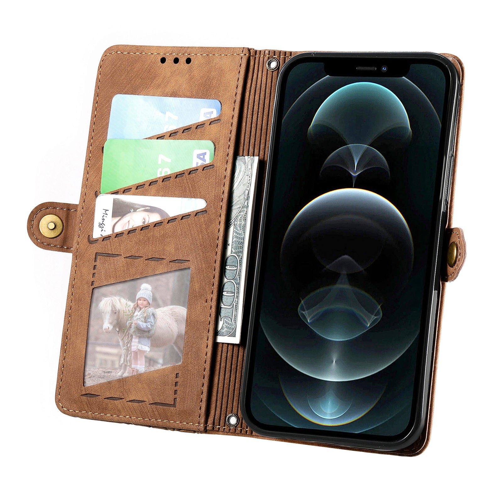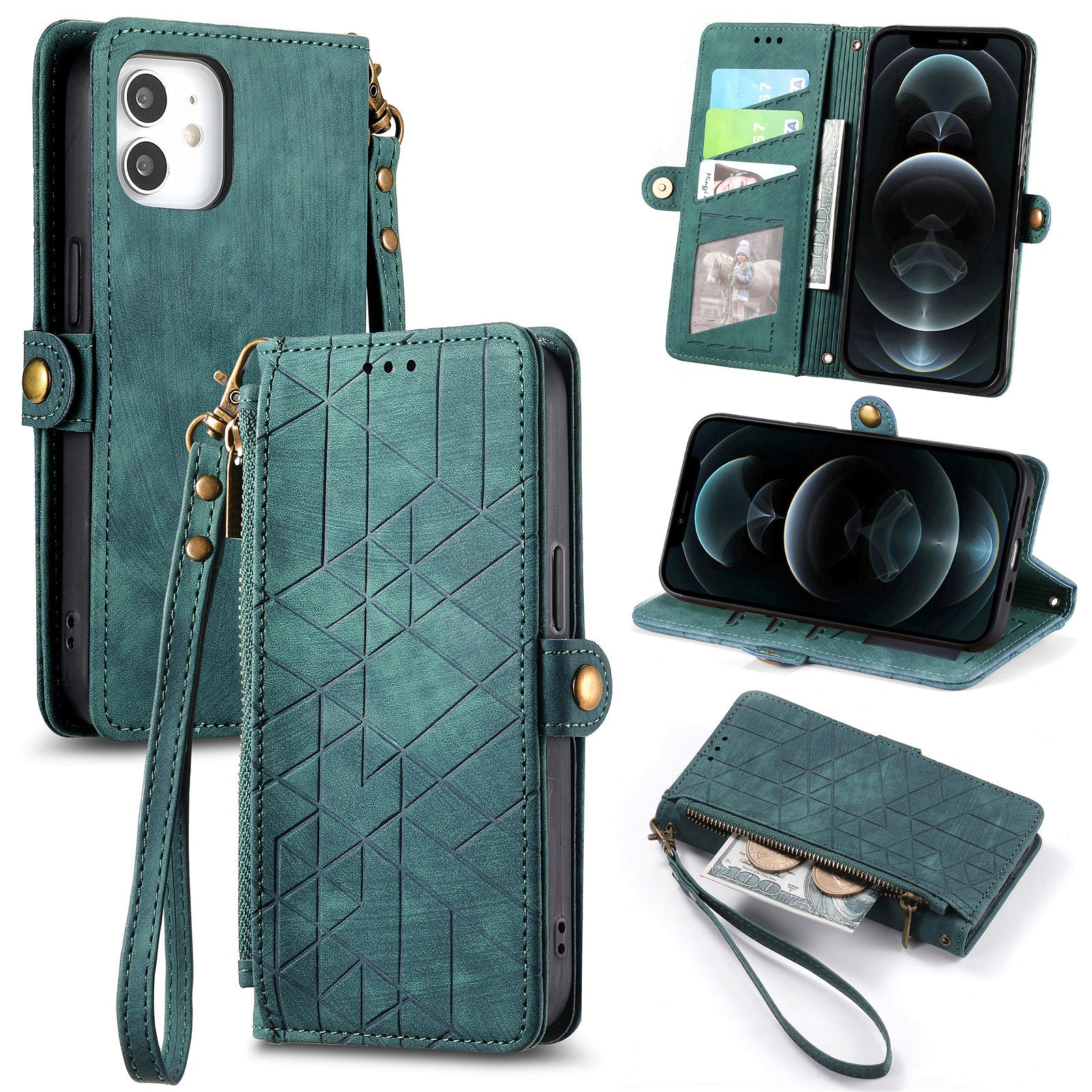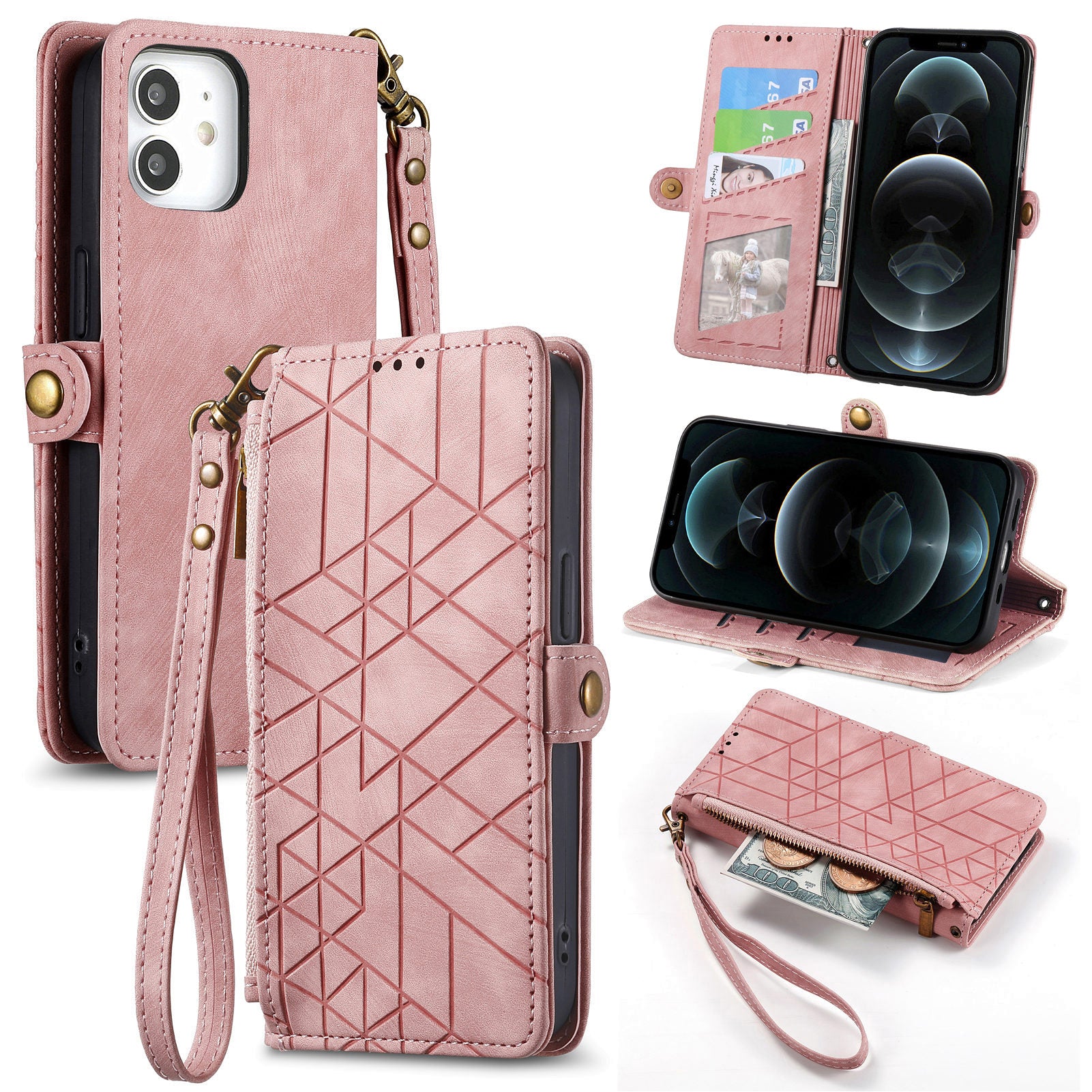 - Til iPhone 12/12 Pro PU-læderstativ Lynlåslomme Telefonetui Geometri præget tegnebogscover Til iPhone 12/12 Pro PU-læderstativ Lynlåslomme Telefonetui Geometri præget tegnebogscover