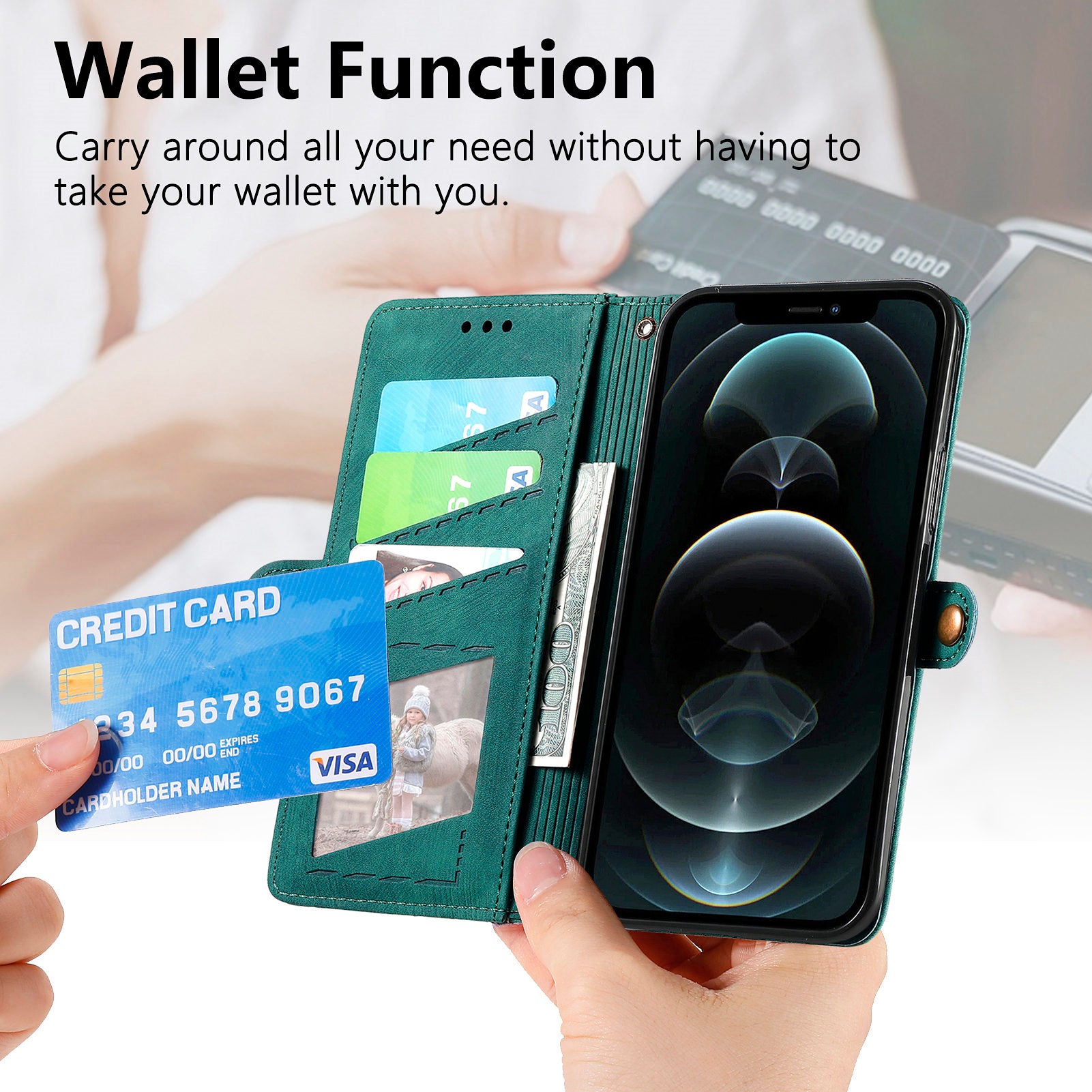 Til iPhone 12/12 Pro PU-læderstativ Lynlåslomme Telefonetui Geometri præget tegnebogscover