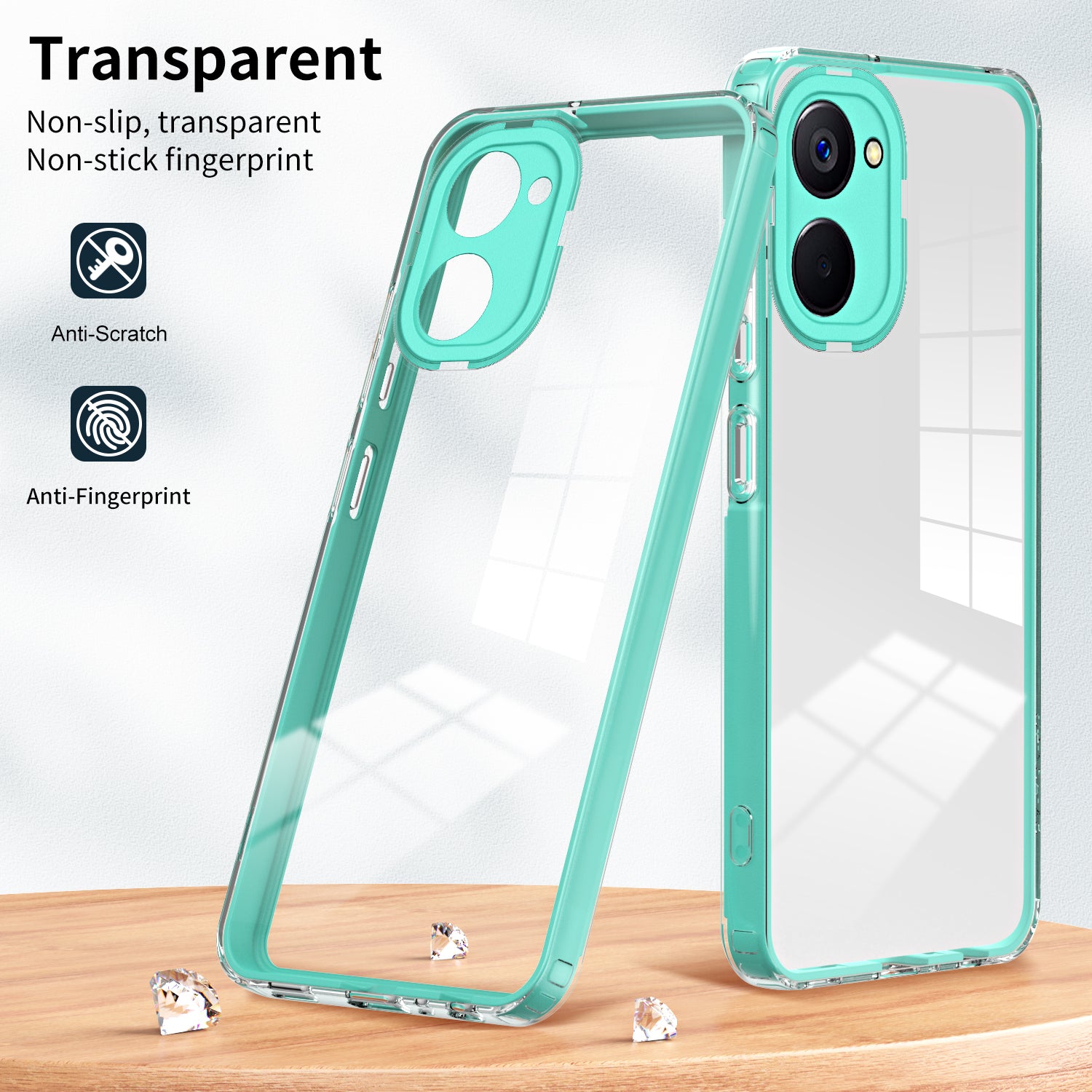 Til Realme 10 4G stødabsorberende 3-i-1 gennemsigtigt telefoncover TPU-bagplade PC-ramme PC-kamera Ringtelefon Hybrid-etui