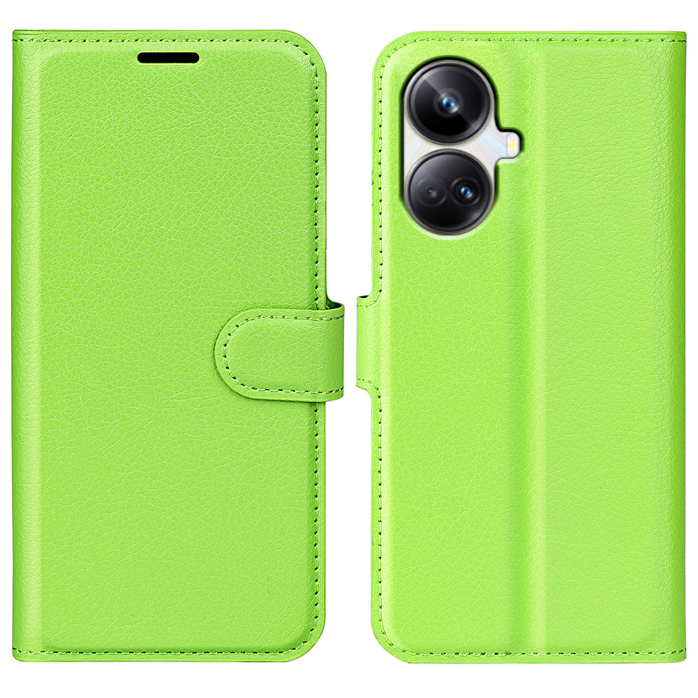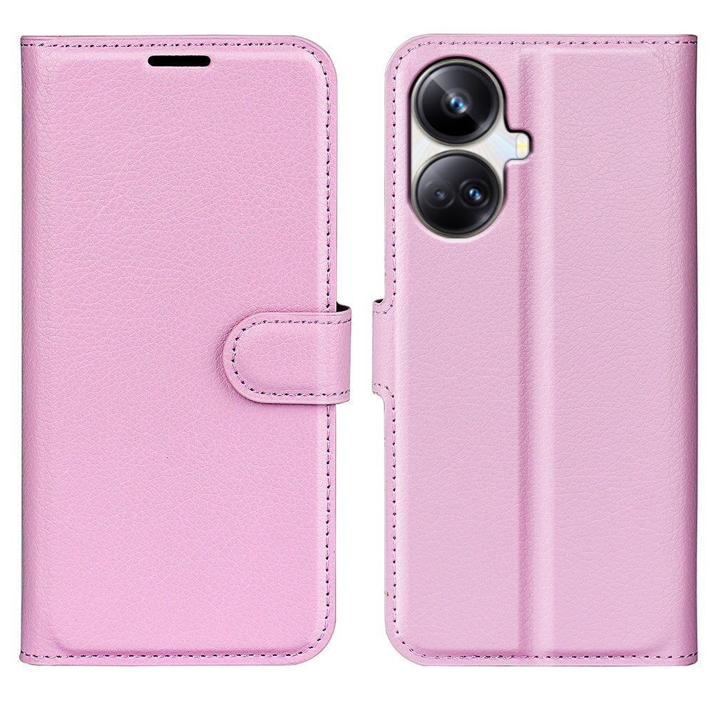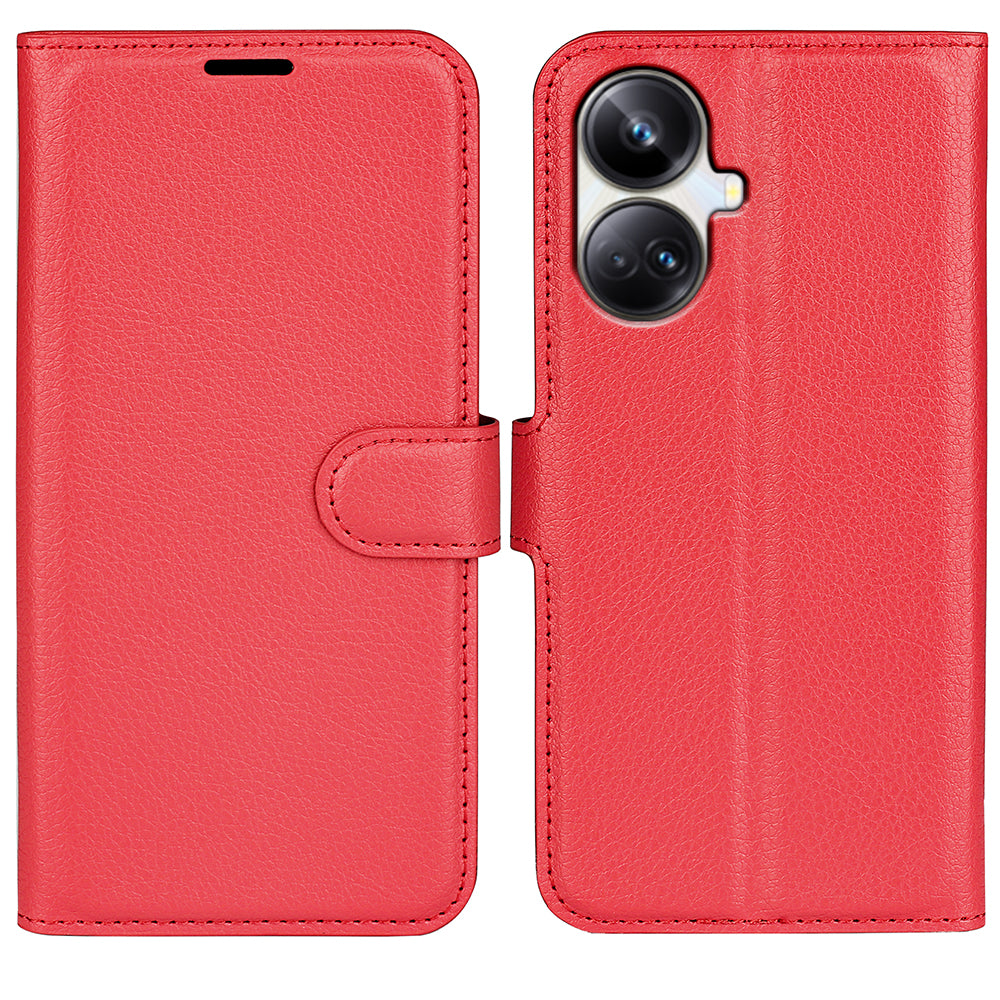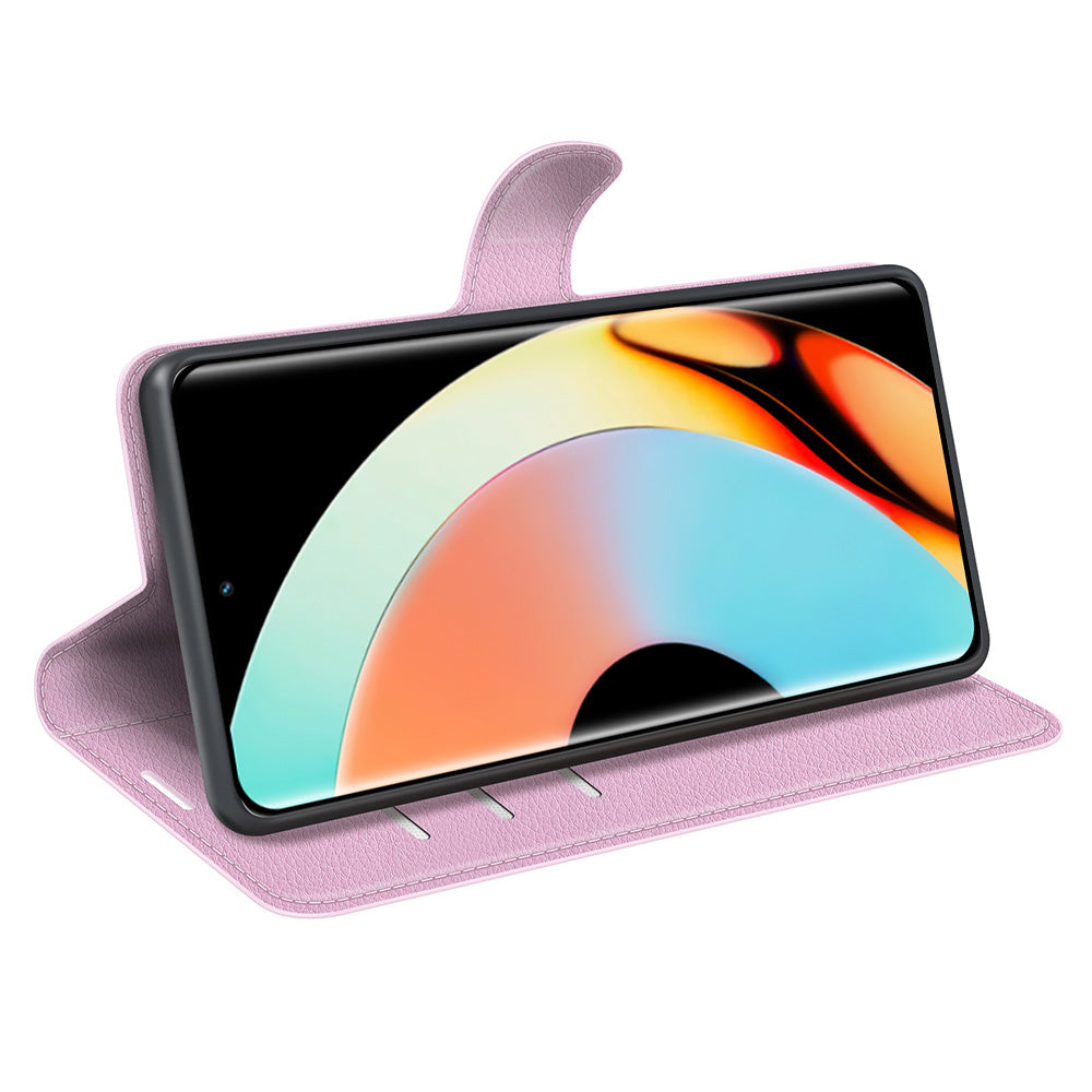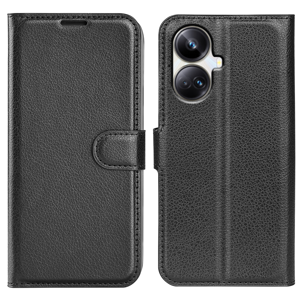 Til Realme 10 Pro 5G Litchi Texture PU-læderstativ tegnebog Telefoncover Fuld beskyttelse Flip Anti-ridse telefoncover