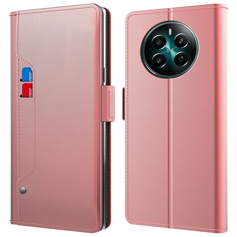 For Realme 12+ 5G Phone Case Mirror Design Anti-Scratch Leather Flip Cover