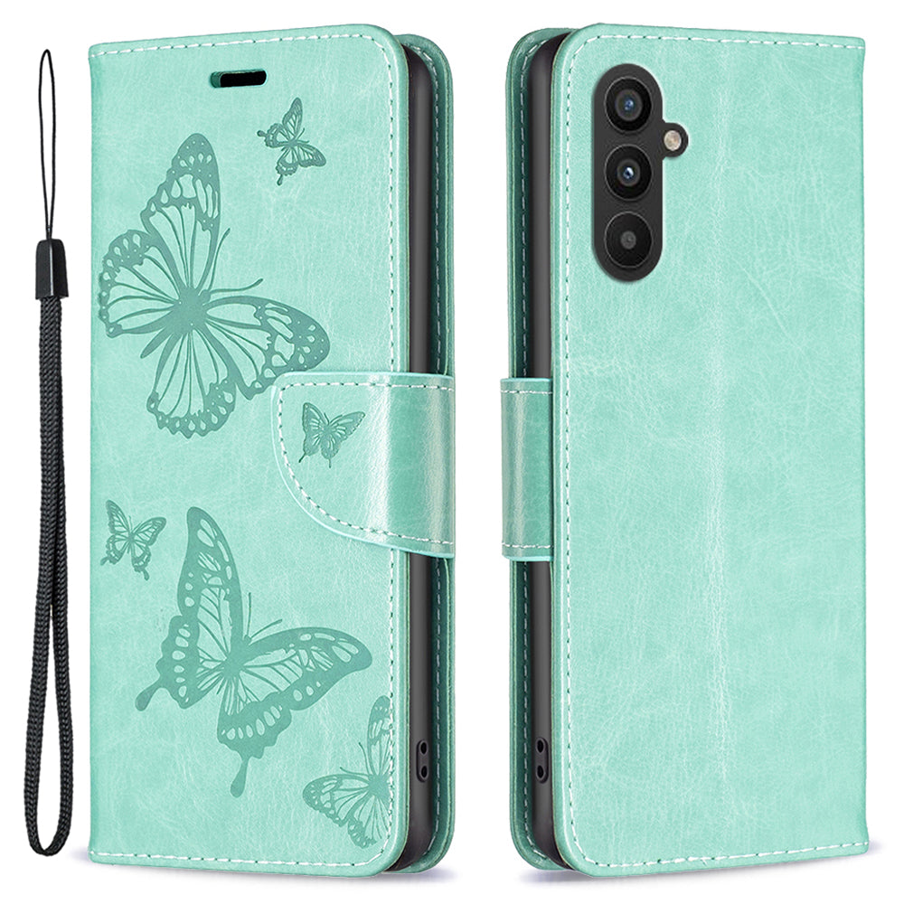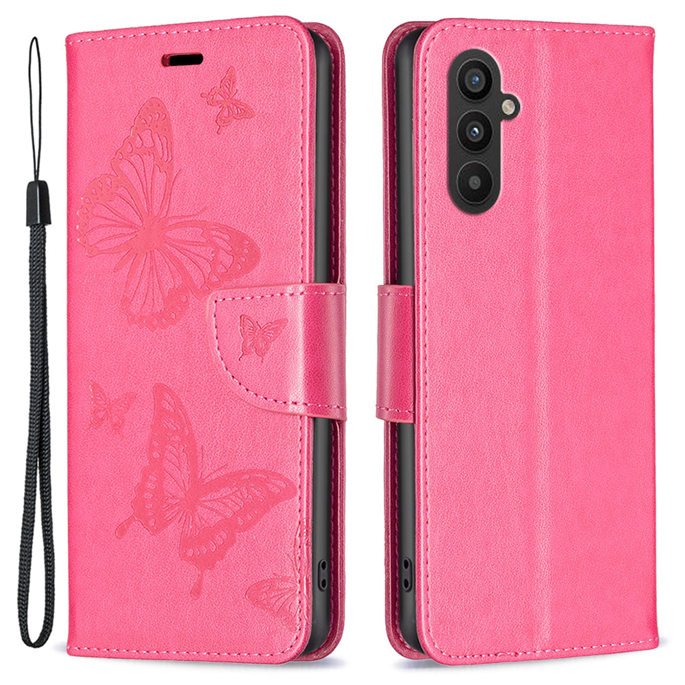 - Til Samsung Galaxy A24 4G tegnebogsstativ Telefoncover Butterfly-præget lædertelefoncover med rem Til Samsung Galaxy A24 4G tegnebogsstativ Telefoncover Butterfly-præget lædertelefoncover med rem