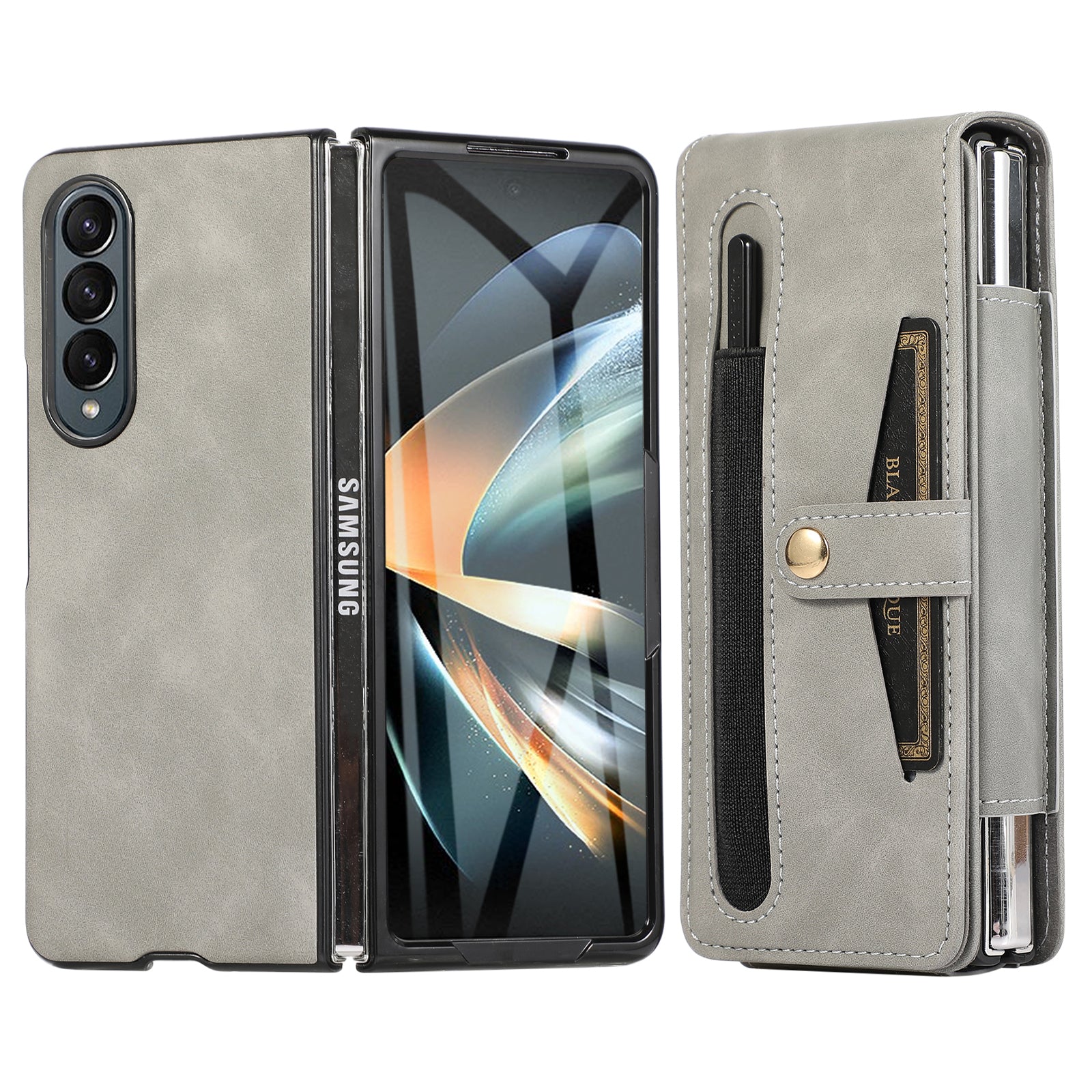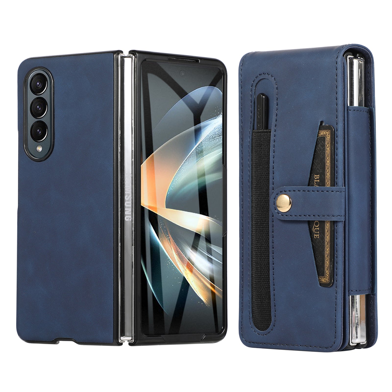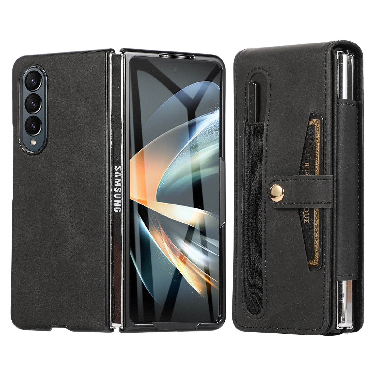 Til Samsung Galaxy Z Fold4 5G PC PU Læder Telefon Case Kortholder Cover med hærdet glas film Stylus