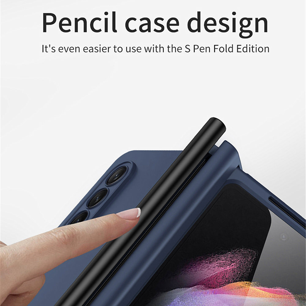 Til Samsung Galaxy Z Fold4 5G Pen Holder Telefon Etui Hard PC Folde Telefon Etui med hærdet glas film