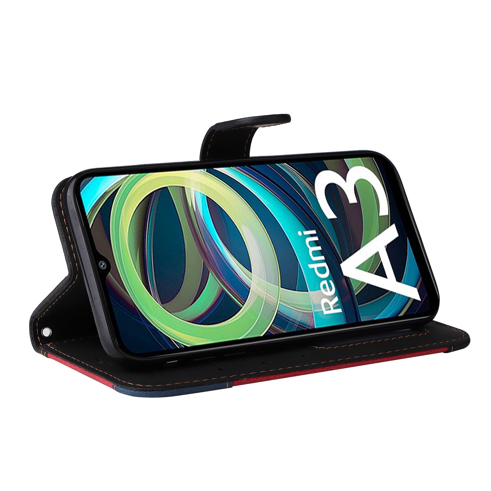 - For Xiaomi Redmi A3 / Poco C61 4G Case PU Leather Three-color Splicing Folio Protective Cover For Xiaomi Redmi A3 / Poco C61 4G Case PU Leather Three-color Splicing Folio Protective Cover
