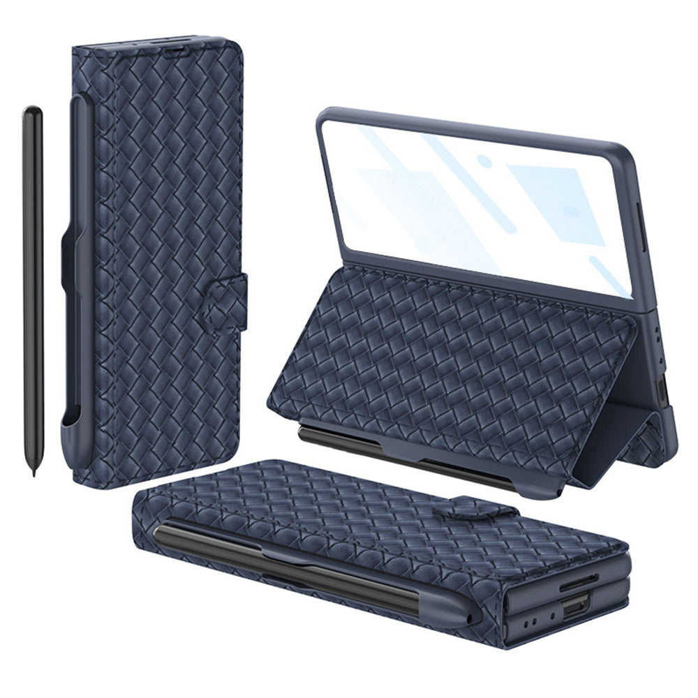- GKK til Samsung Galaxy Z Fold4 5G PU læder telefontaske vævet tekstur stativcover med penneåbning Hærdet glasfilm GKK til Samsung Galaxy Z Fold4 5G PU læder telefontaske vævet tekstur stativcover med penneåbning Hærdet glasfilm