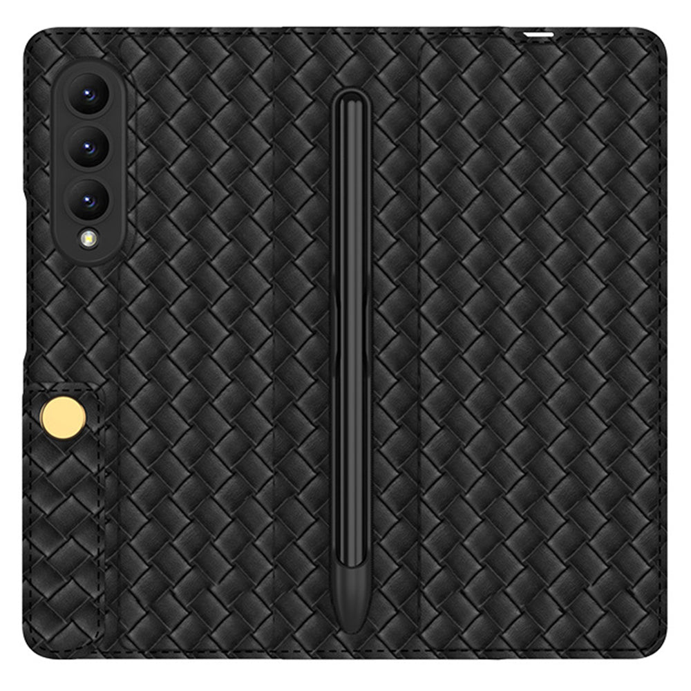 GKK til Samsung Galaxy Z Fold4 5G PU læder telefontaske vævet tekstur stativcover med penneåbning Hærdet glasfilm