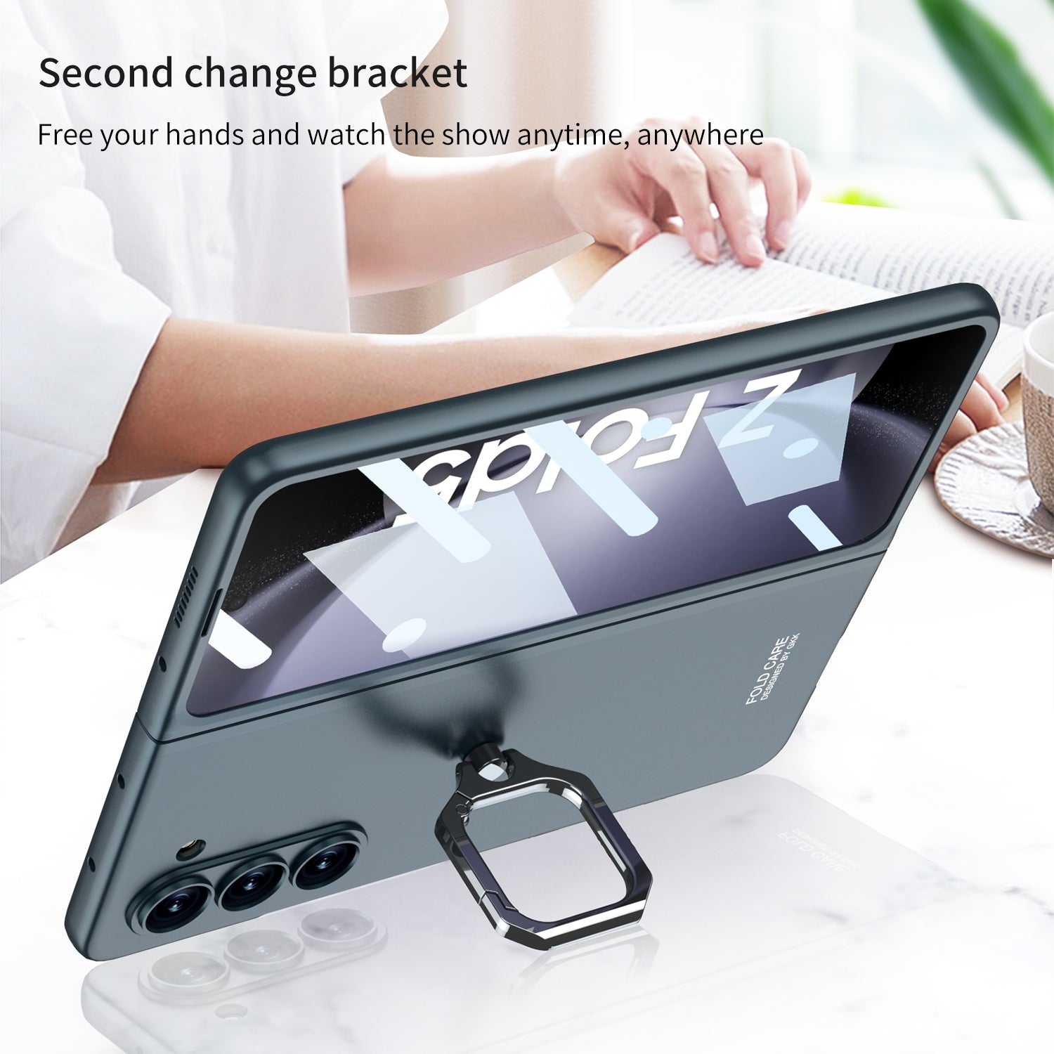 GKK Hard PC Case til Samsung Galaxy Z Fold5 5G Metal Ring Kickstand telefoncover med hærdet glasfilm