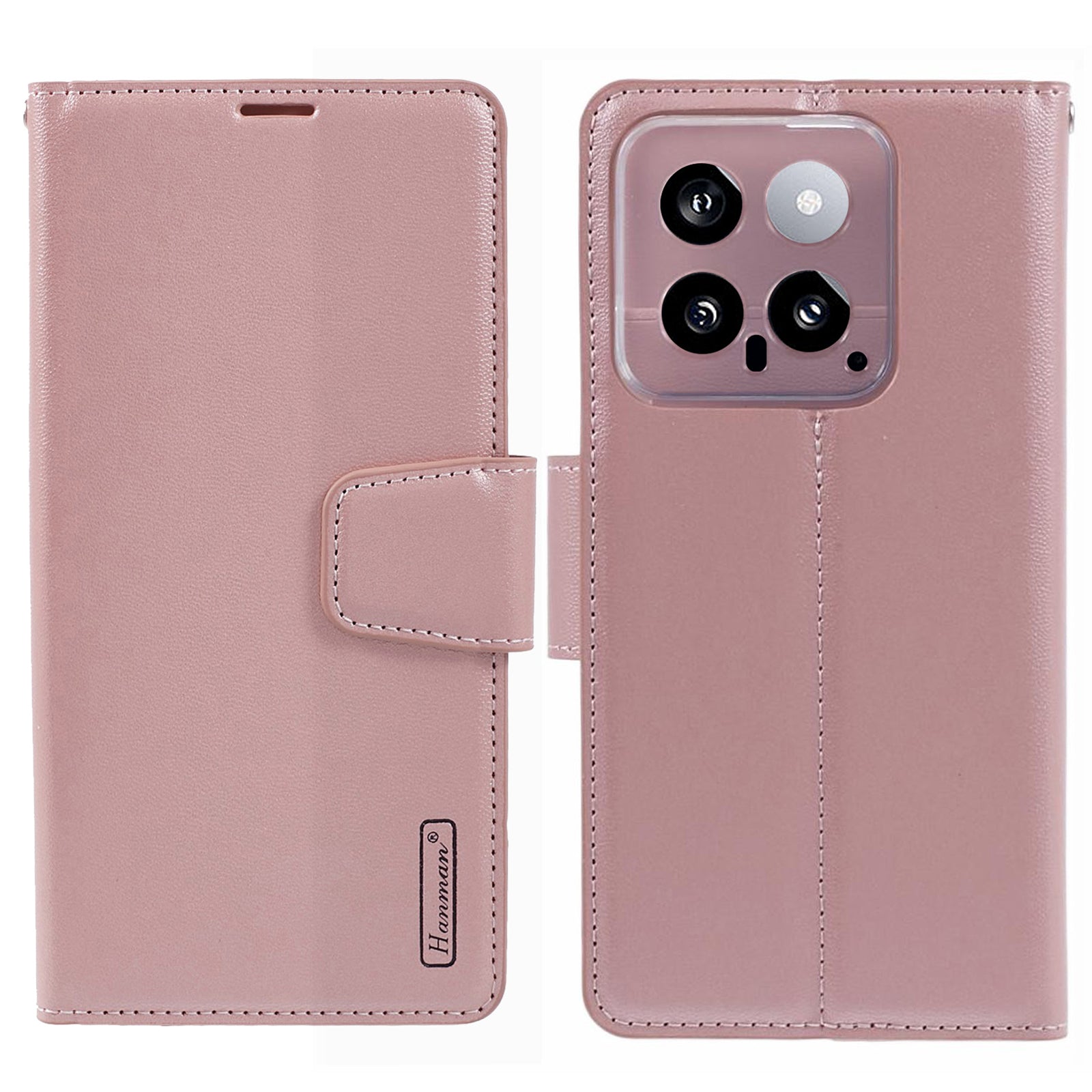HANMAN Mill Series Phone Shell for Xiaomi 14 Case Wallet PU Leather Stand Cover - Black