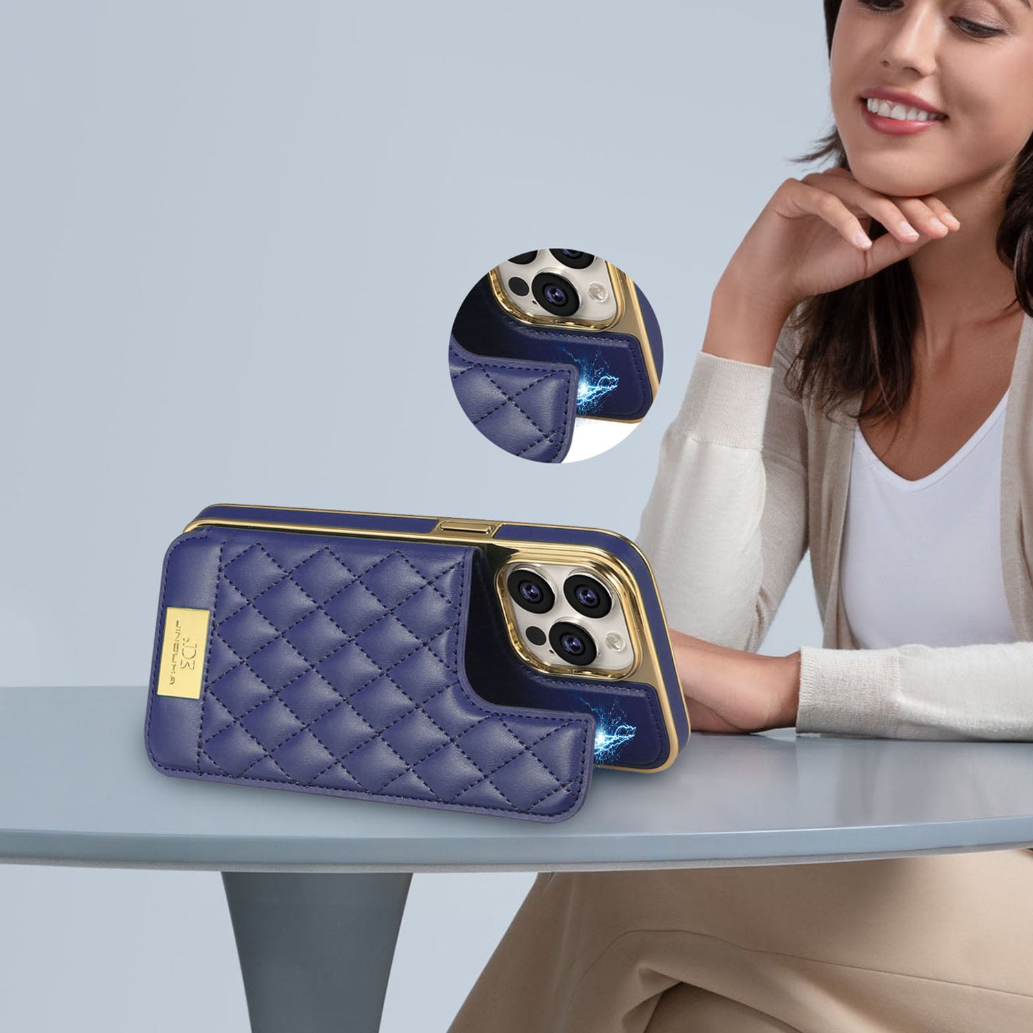 JINDUKA D3 Series for iPhone 13 Pro Case Leather+PC Card Slots Phone Cover Stitching Rhombus