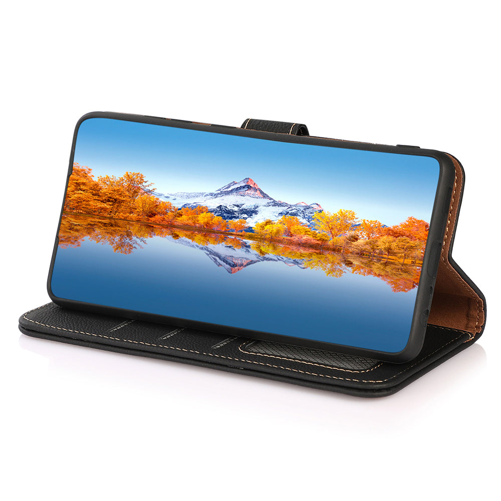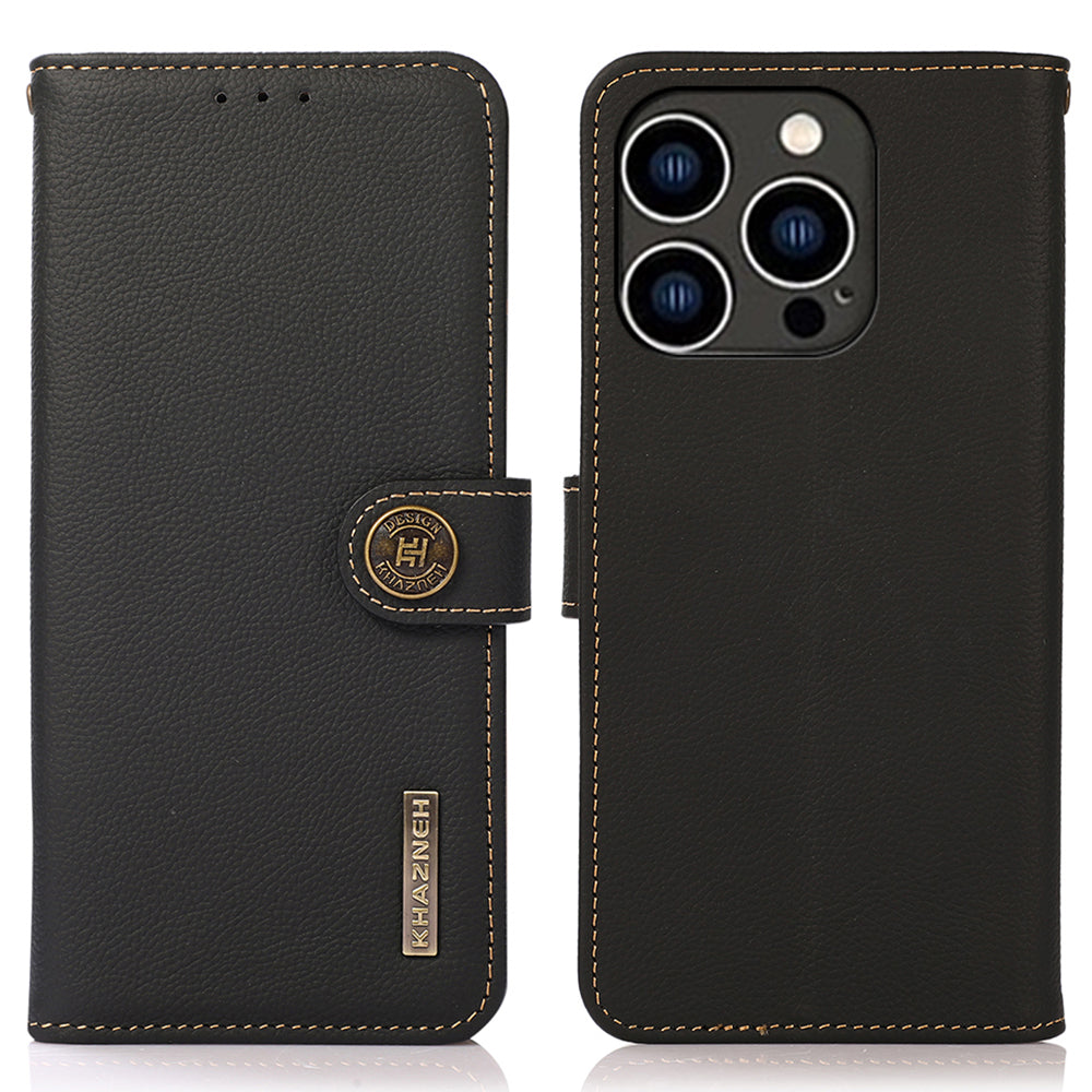 KHAZNEH Mobiltelefontaske til iPhone 15 Pro Max RFID-blokerende ægte ko-læder pungholder telefoncover