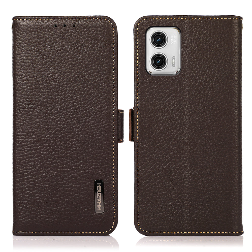 - KHAZNEH For Motorola Moto G73 5G RFID Blocking Litchi Texture Phone Case Genuine Leather Wallet Protective Stand Cover KHAZNEH For Motorola Moto G73 5G RFID Blocking Litchi Texture Phone Case Genuine Leather Wallet Protective Stand Cover