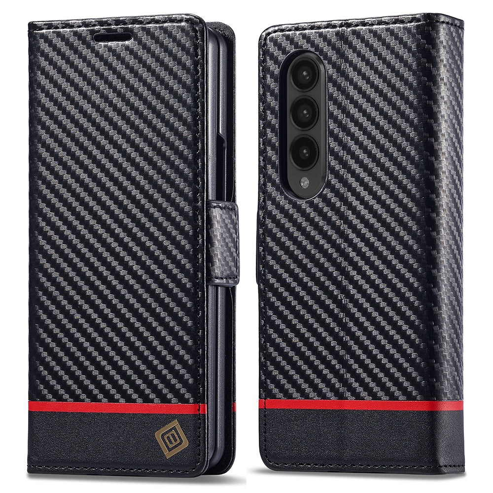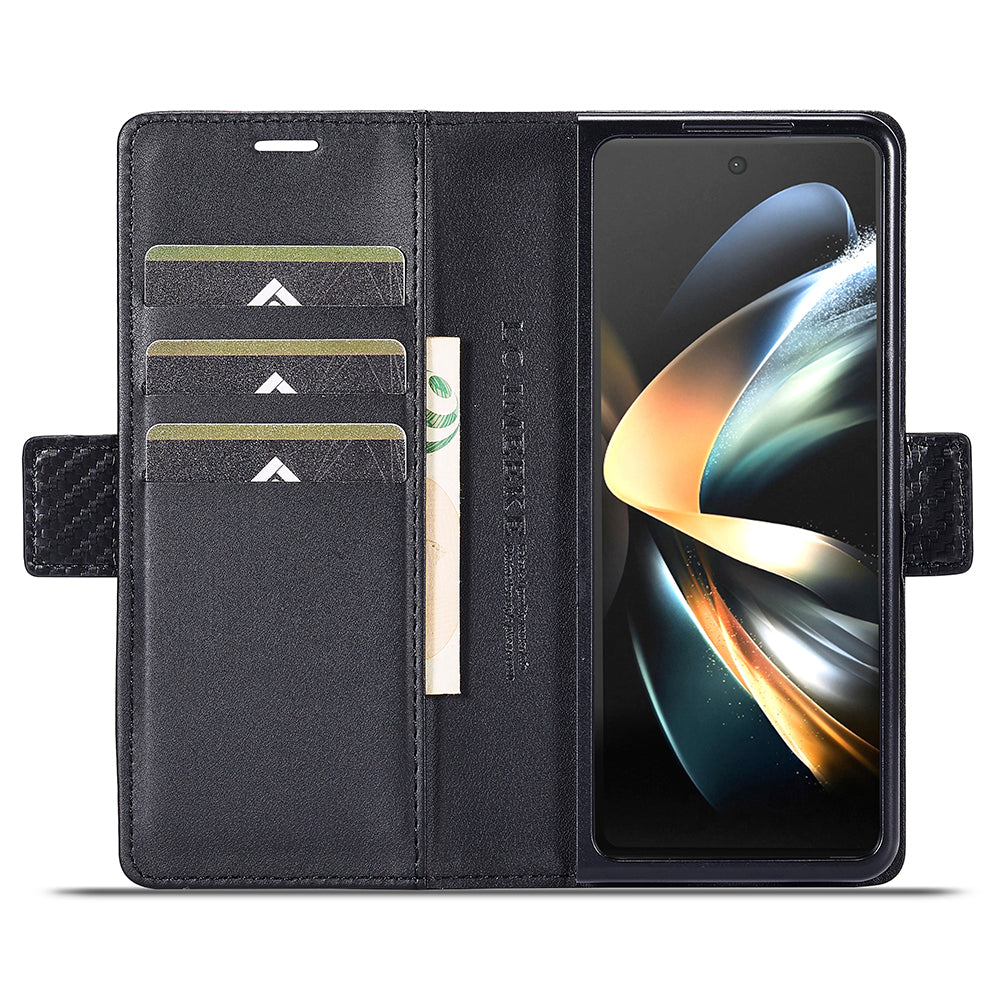 LC.IMEEKE til Samsung Galaxy Z Fold4 5G læder pung etui Stand Carbon Fiber Texture Telefon Cover
