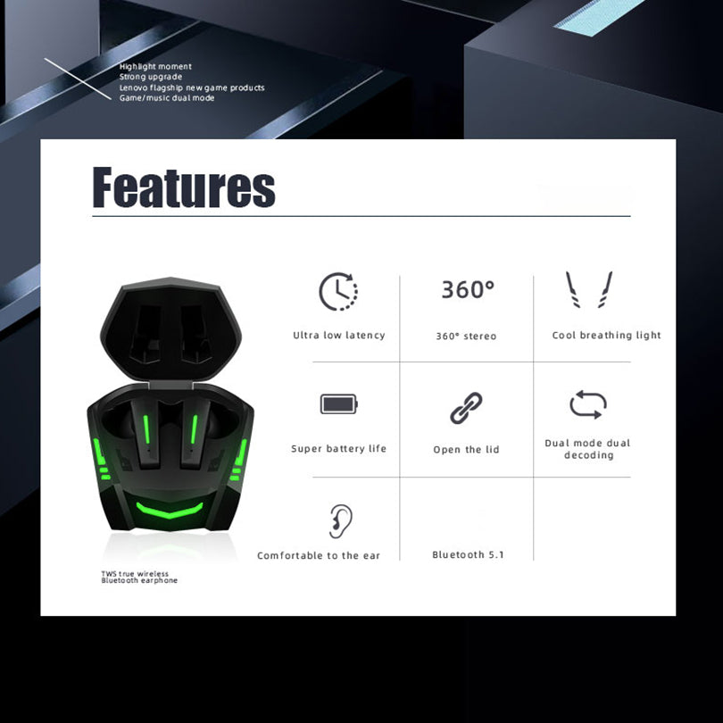 - LENOVO XT80 Trådløst Bluetooth Gaming Headset Letvægts TWS Earbuds Hovedtelefoner LENOVO XT80 Trådløst Bluetooth Gaming Headset Letvægts TWS Earbuds Hovedtelefoner