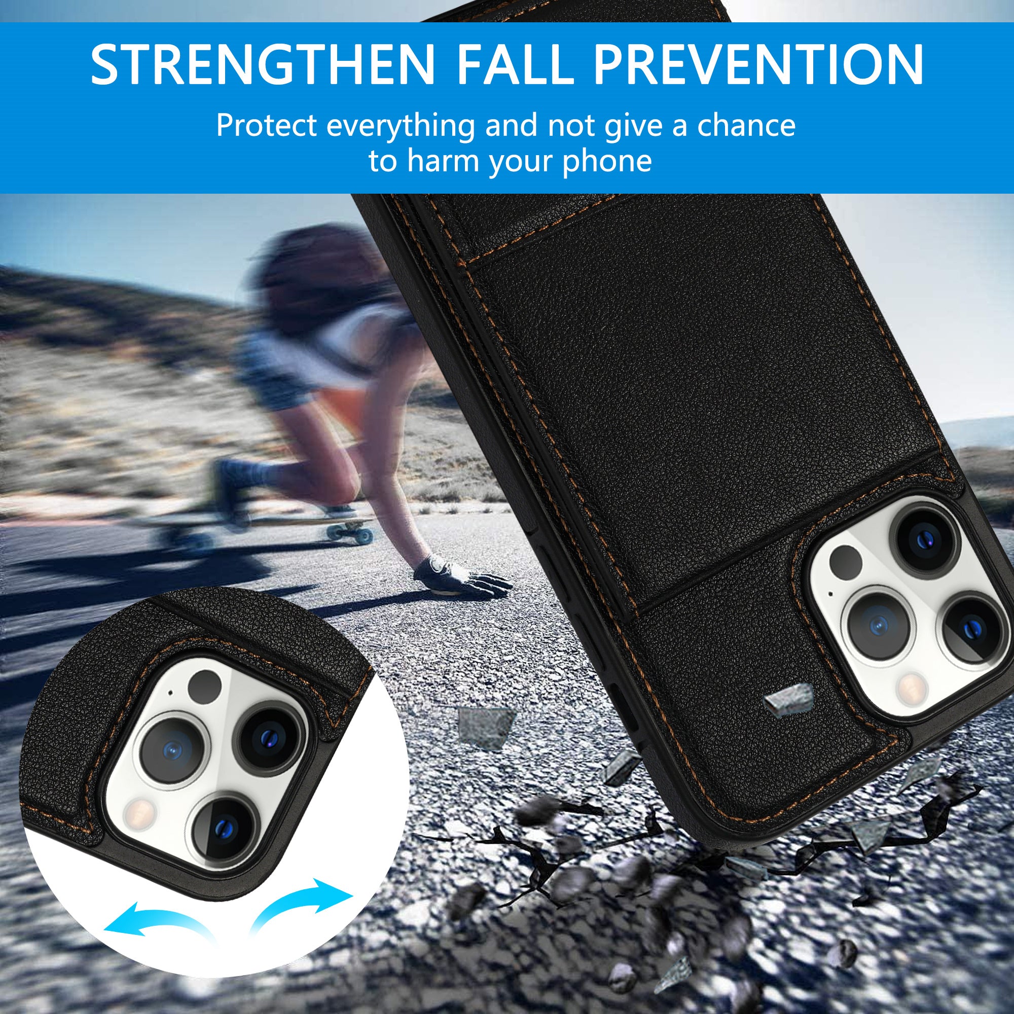 - N.BEKUS Til iPhone 14 Pro RFID-blokerende PU-læderbelagt TPU-telefoncover Kortslots Støttebagcover N.BEKUS Til iPhone 14 Pro RFID-blokerende PU-læderbelagt TPU-telefoncover Kortslots Støttebagcover