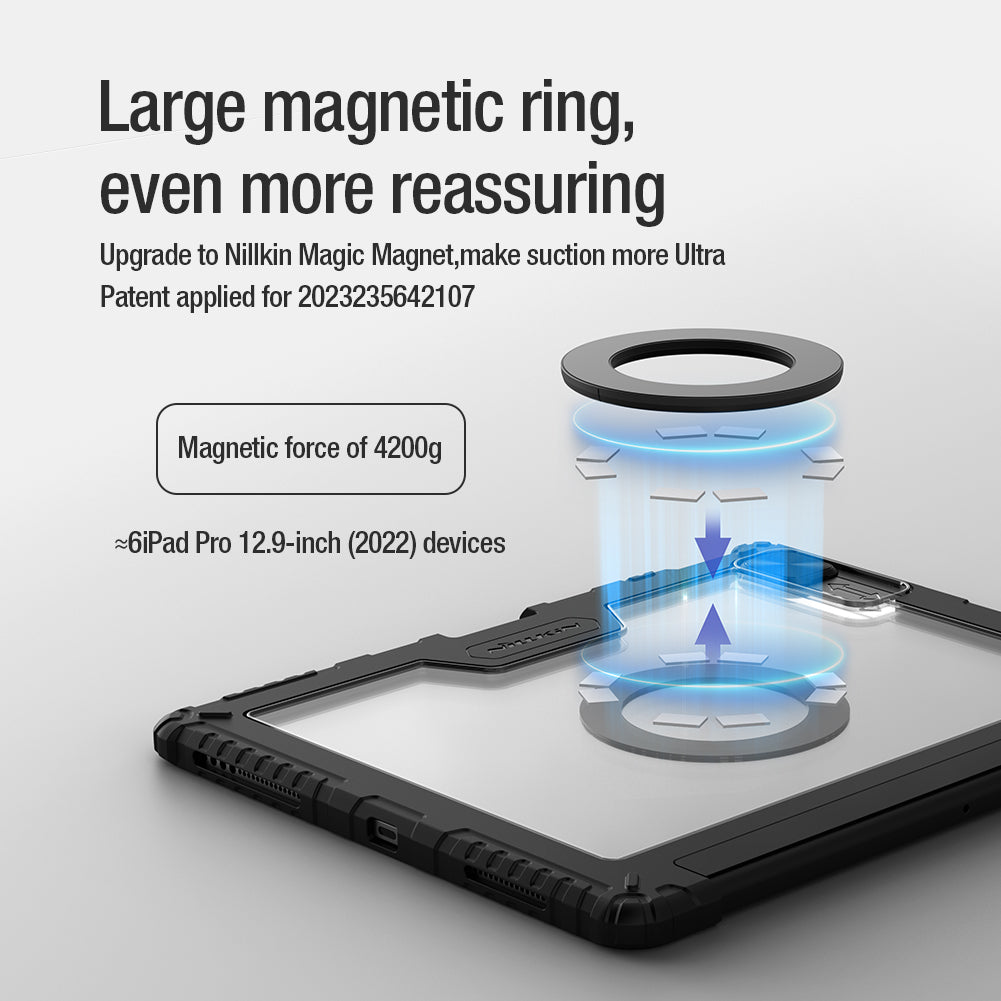 - Upgraded to adopt Nillkin magic magnet, which can switch between horizontal and vertical screens at will, and can be firmly absorbed by large-size tablets