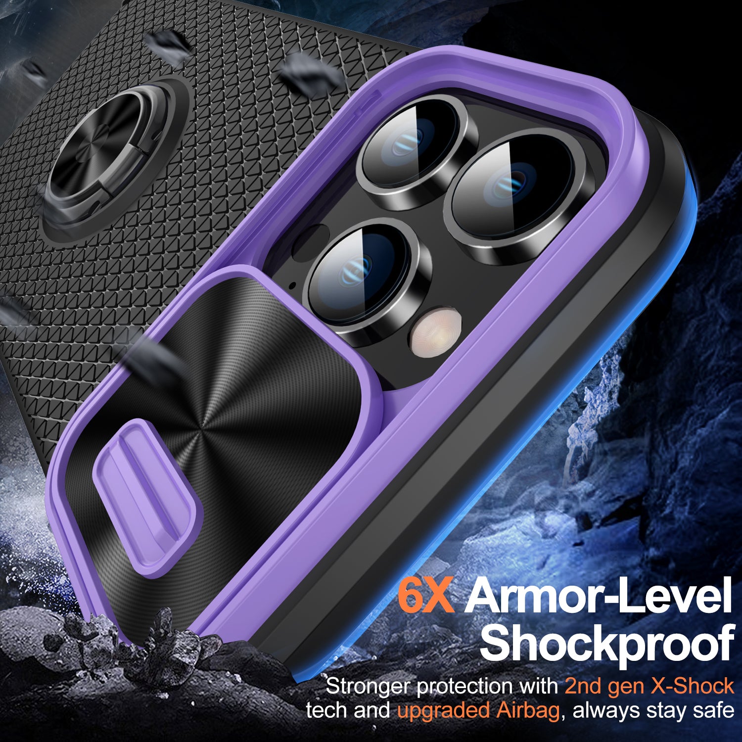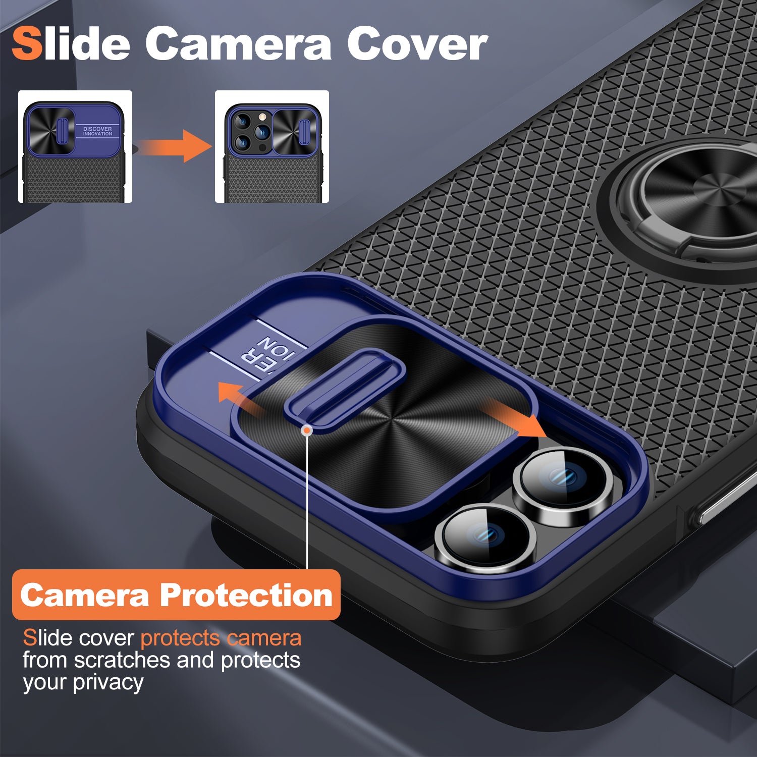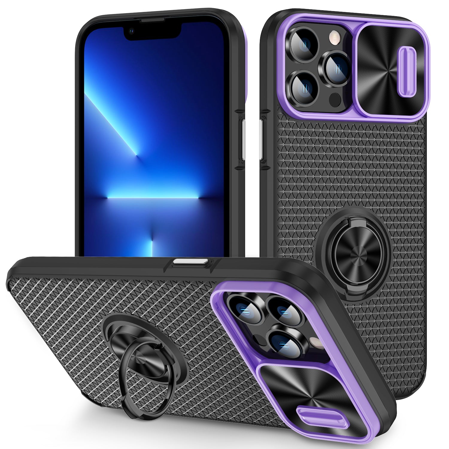- Telefoncover til iPhone 13 Pro Max Ringholder Kickstand Slide Lens Shield PC TPU telefoncover Telefoncover til iPhone 13 Pro Max Ringholder Kickstand Slide Lens Shield PC TPU telefoncover
