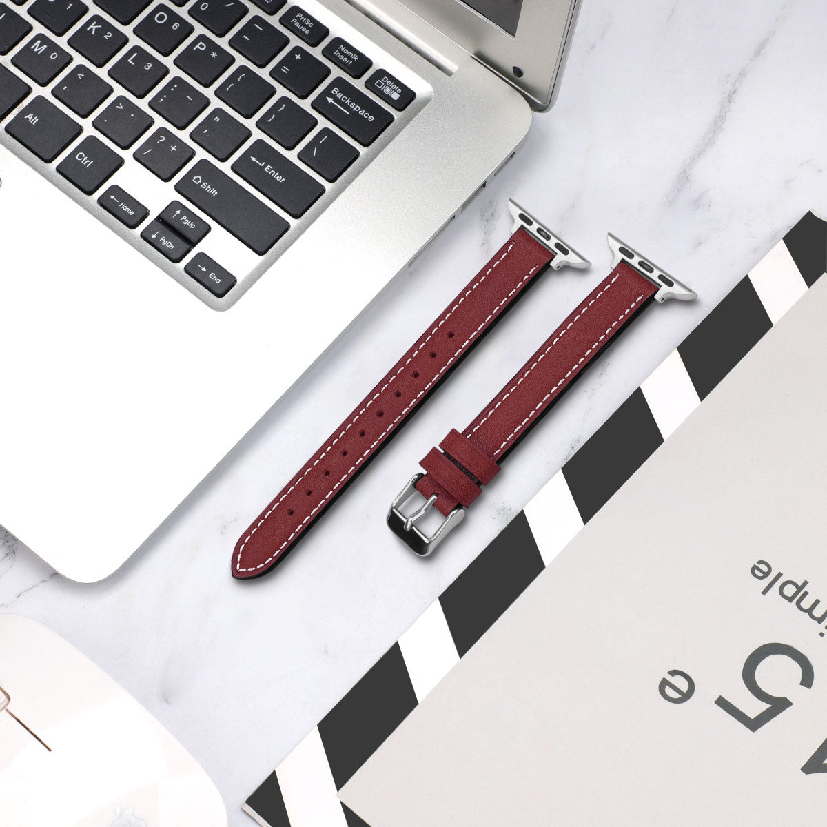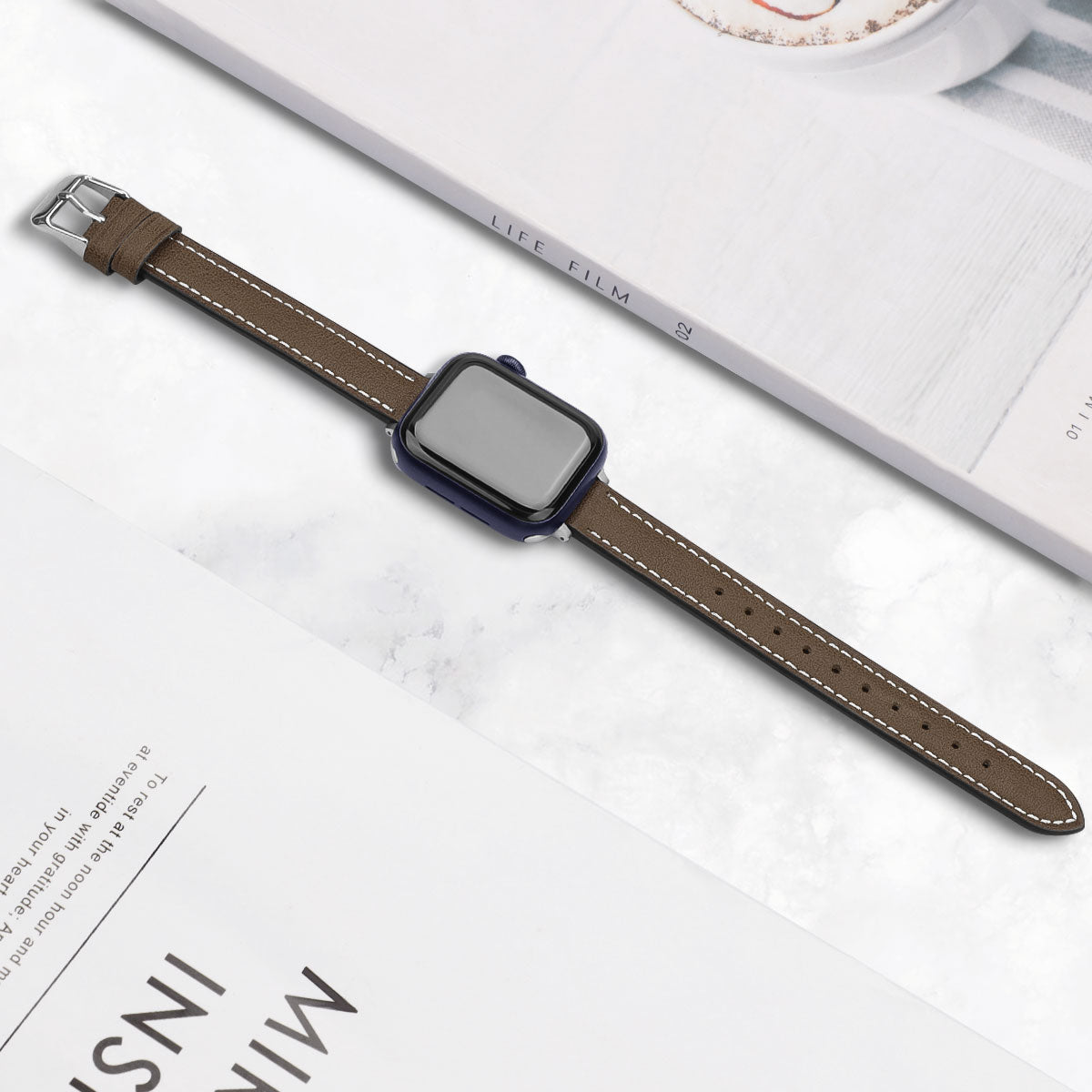 Retro udskiftningsbånd i ægte læder smal Smart Watch-håndledsrem til Apple Watch Ultra 2 49mm Series 9 45mm SE (2023) 44mm Ultra 49mm Series 8 45mm 7 45mm Series 6 5 4 SE 44mm SE (2022) 44mm Series 1 4 2mm