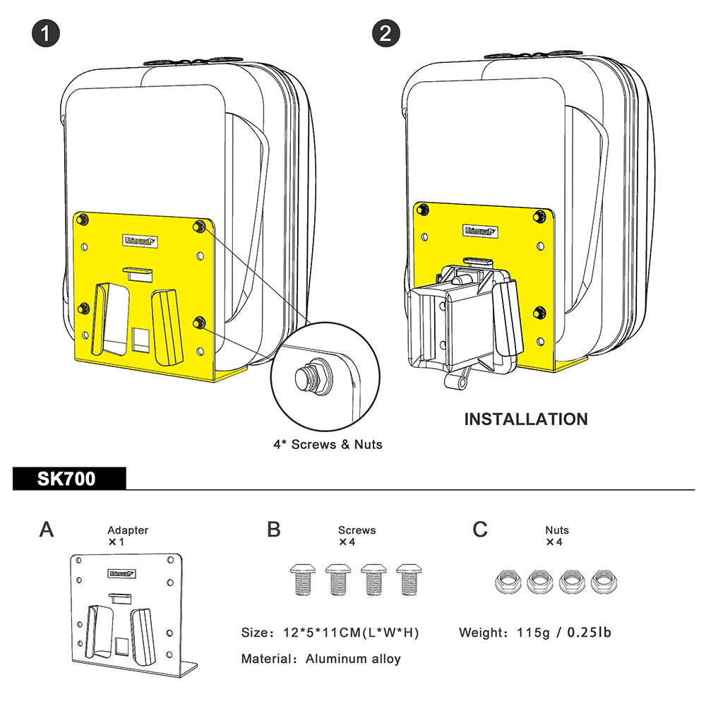 - Fitted for Brompton bikes front adapter, use 4 screws, then tighten the nuts