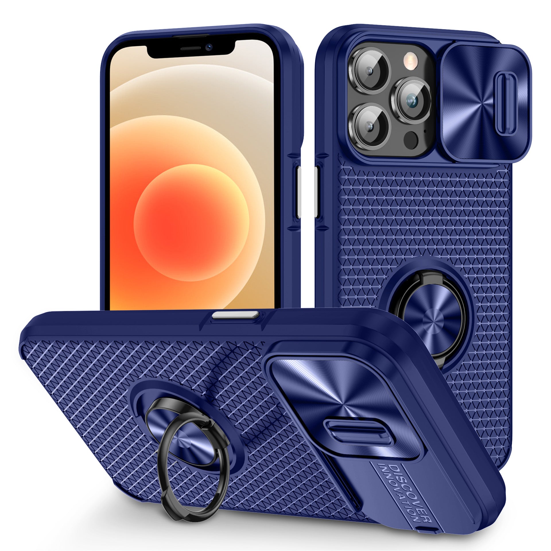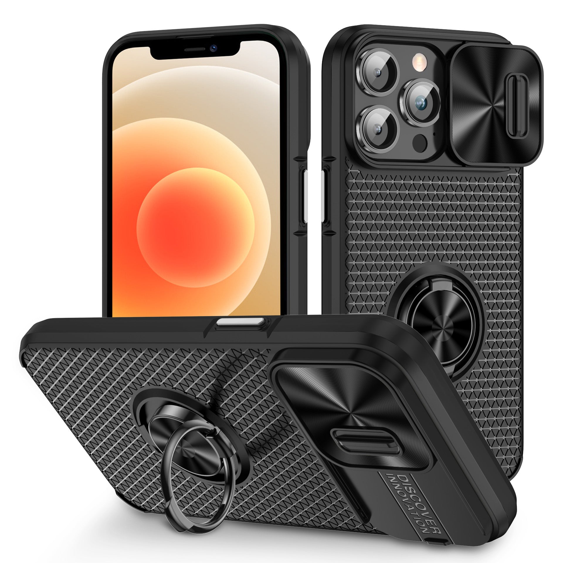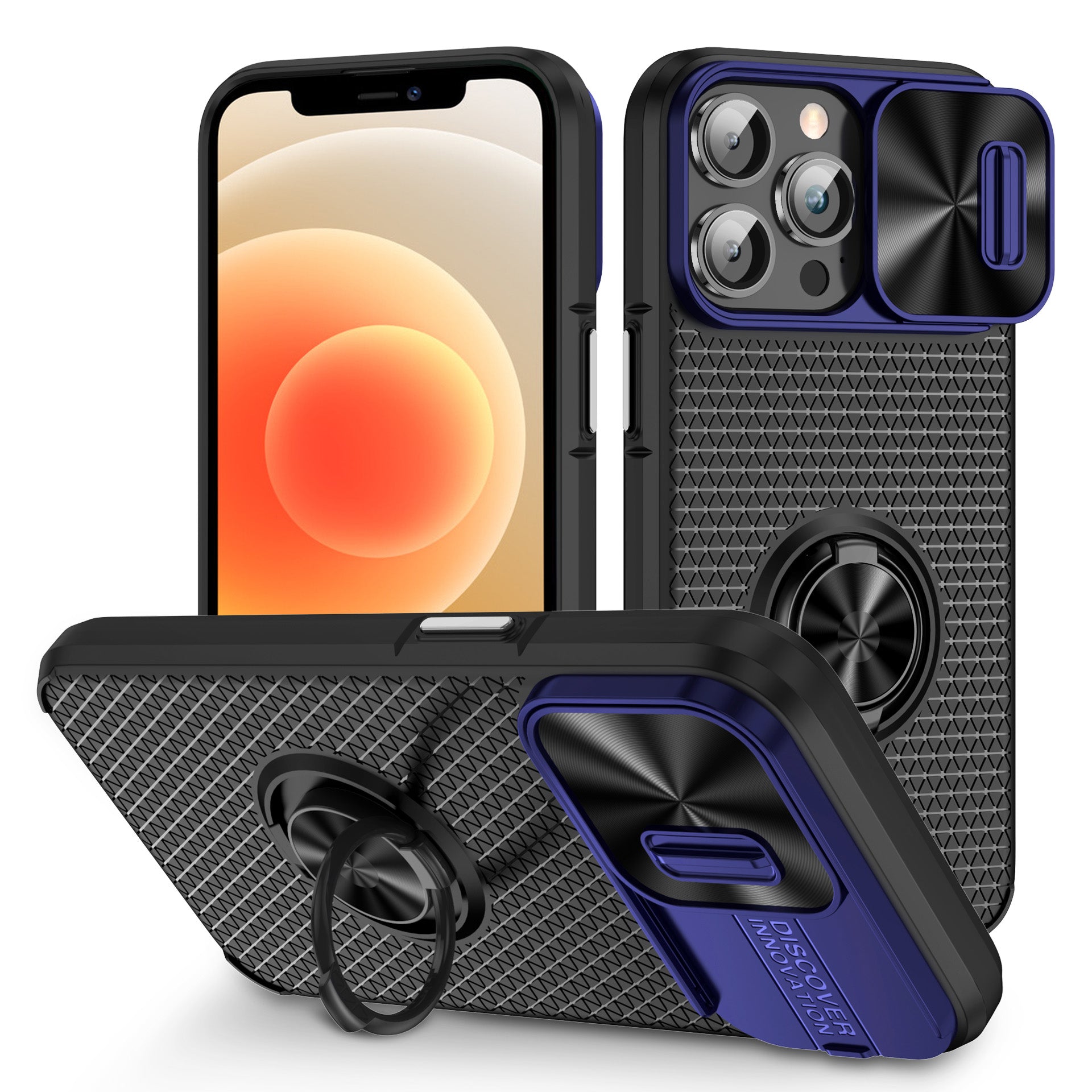 - Slide Lens Protection Phone Case til iPhone 12 Pro Max Ring Kickstand PC TPU Mobiltelefon Cover Slide Lens Protection Phone Case til iPhone 12 Pro Max Ring Kickstand PC TPU Mobiltelefon Cover