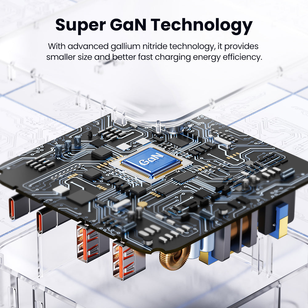- With advanced gallium nitride technology, it provides smaller size and better fast charging energy efficiency