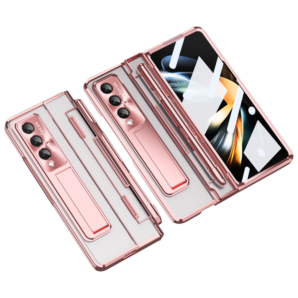Gennemsigtigt telefoncover til Samsung Galaxy Z Fold4 5G Kickstand Galvanisering Ridsefast pc-cover med hærdet glasfilm og stylus