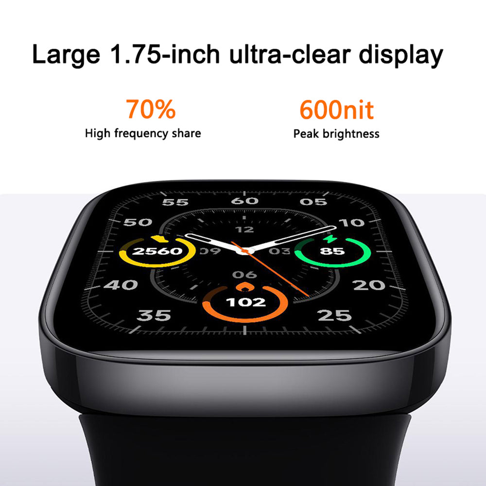 - 1,75 tommer stor skærm: 1,75" AMOLED-skærm, et skærmforhold på op til 70%, beskedpåmindelser, sportsdata og anden information på én skærm; 600nit peak lysstyrke, du kan nemt læse informationen i stærkt lys