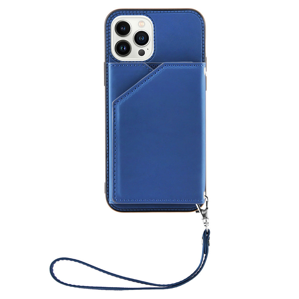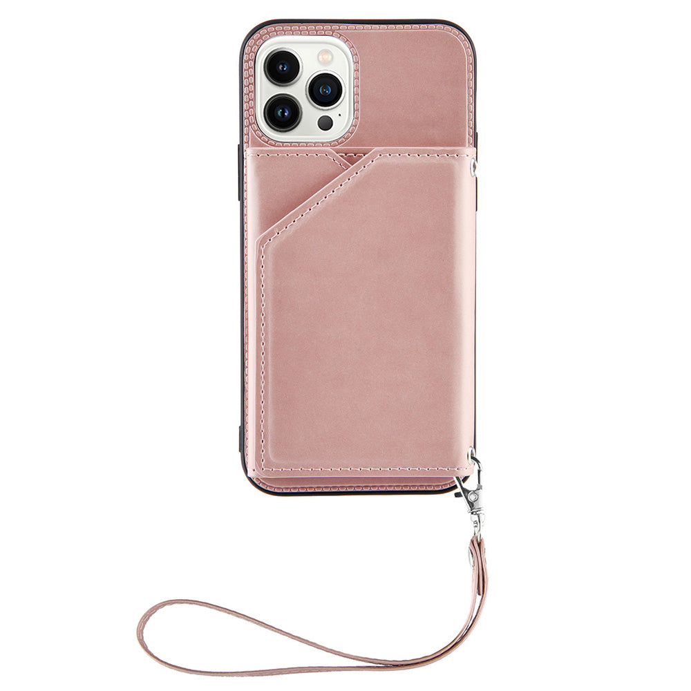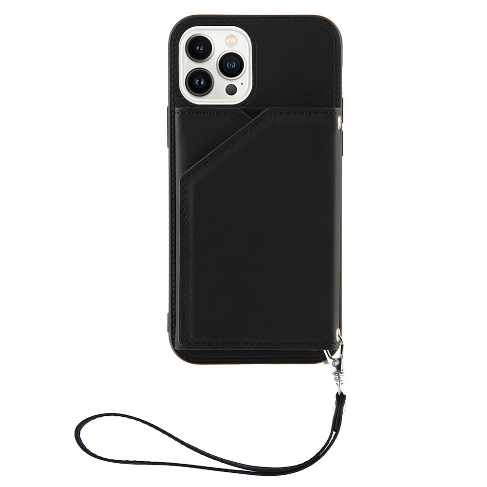 YB Leather Coating Series-2 til iPhone 15 Pro Max Kortholder Telefon Case Kickstand Lædercoating TPU cover med rem