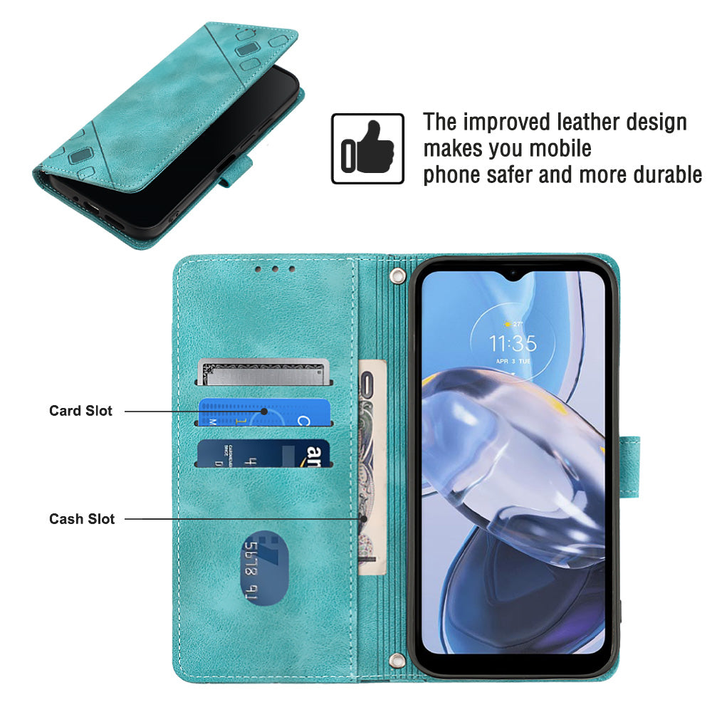 PT005 YB Imprinting Series-6 Stand Shell for Motorola Moto E22 4G E22i 4G Skin Touch Leather Wallet Protective Case