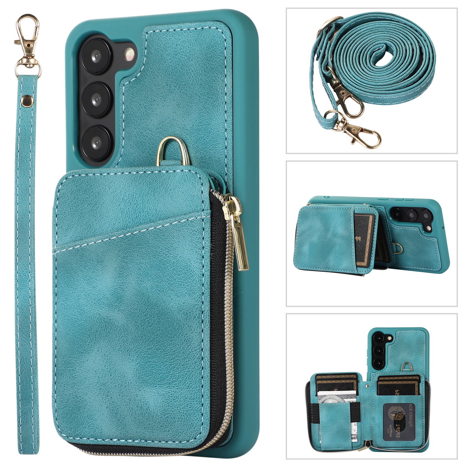 - For Samsung Galaxy S23 Zipper Card Holder Phone Case Leather Coated TPU Kickstand Cover with Straps For Samsung Galaxy S23 Zipper Card Holder Phone Case Leather Coated TPU Kickstand Cover with Straps
