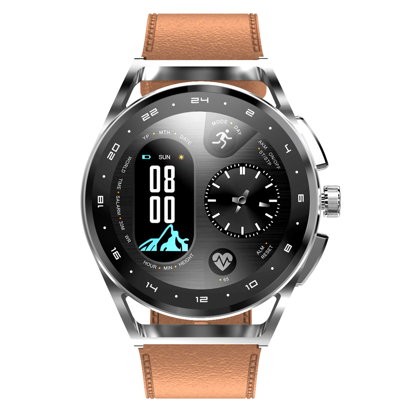 LEMONDA SMART H8S 1.32¡± Full Touch Screen Smart Watch with Heart Rate/Sleep Monitoring Health Watch IP67 Waterproof Sports Bracelet Support Message Reminder - Brown/Leather