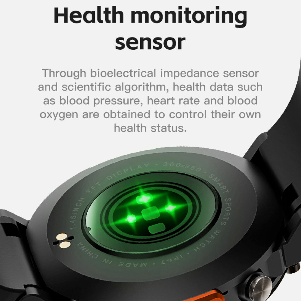 S100T 1.45-inch Music Bluetooth Call Smart Watch Heart Rate, Blood Pressure Monitoring Health Bracelet with Flashlight