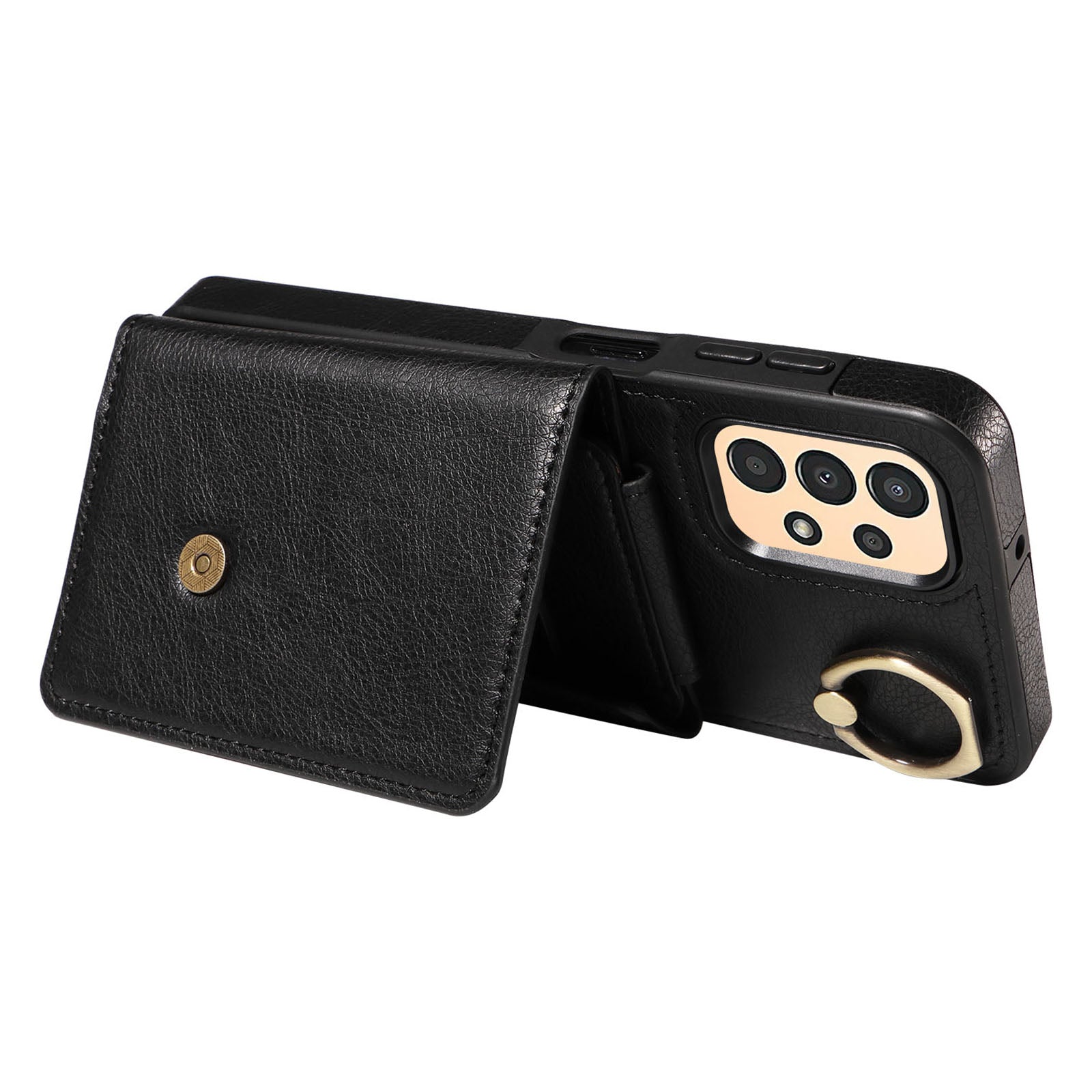 002 Phone Shell for Samsung Galaxy A13 4G A13 5G A04 4G A04s 4G Ring Kickstand Card Bag Litchi Texture Leather TPU Case with Shoulder Strap