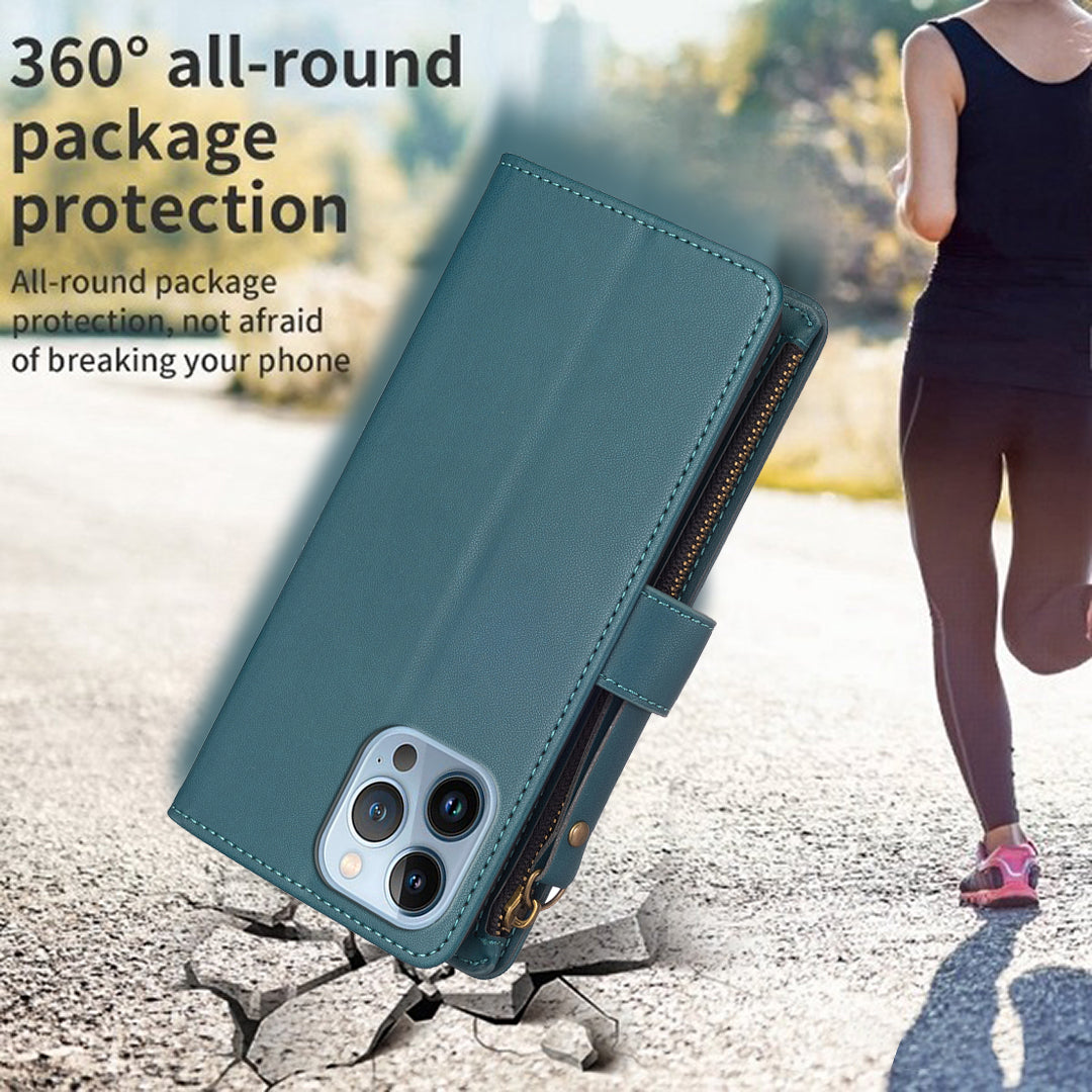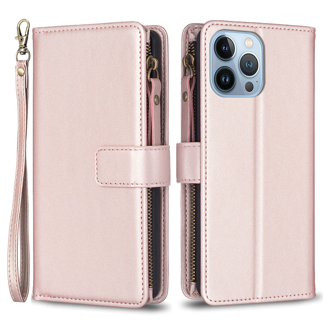 BF Style-19 Zipper Pocket Stand Case for iPhone 13 Pro Wallet PU Leather Shockproof Phone Cover