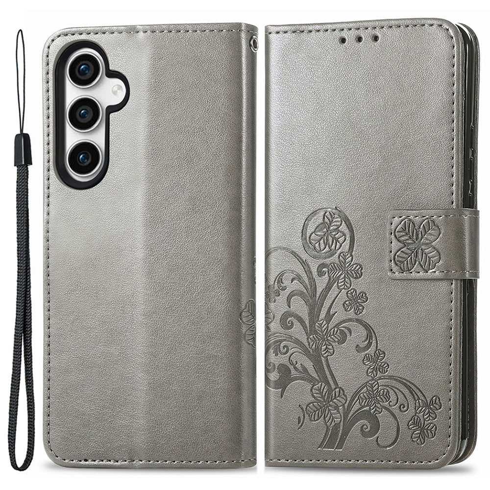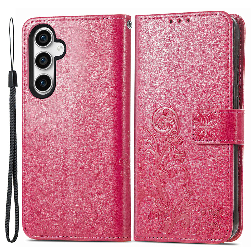 - For Samsung Galaxy S23 FE Wallet PU Leather Cover Four-leaf Clover Imprinted Phone Stand Case with Wrist Strap For Samsung Galaxy S23 FE Wallet PU Leather Cover Four-leaf Clover Imprinted Phone Stand Case with Wrist Strap