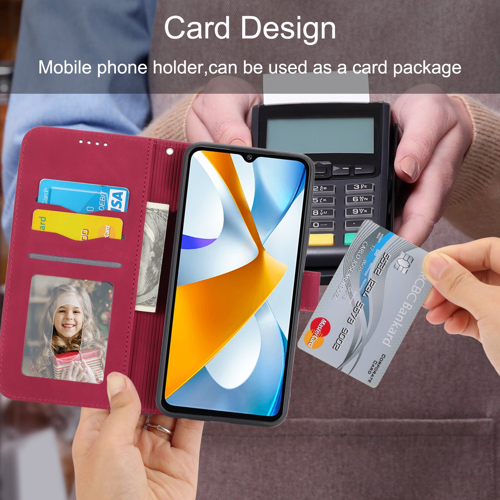 The magnetic clasp closes easily and firmly to keep the phone, cash and cards in one place neatly and securely