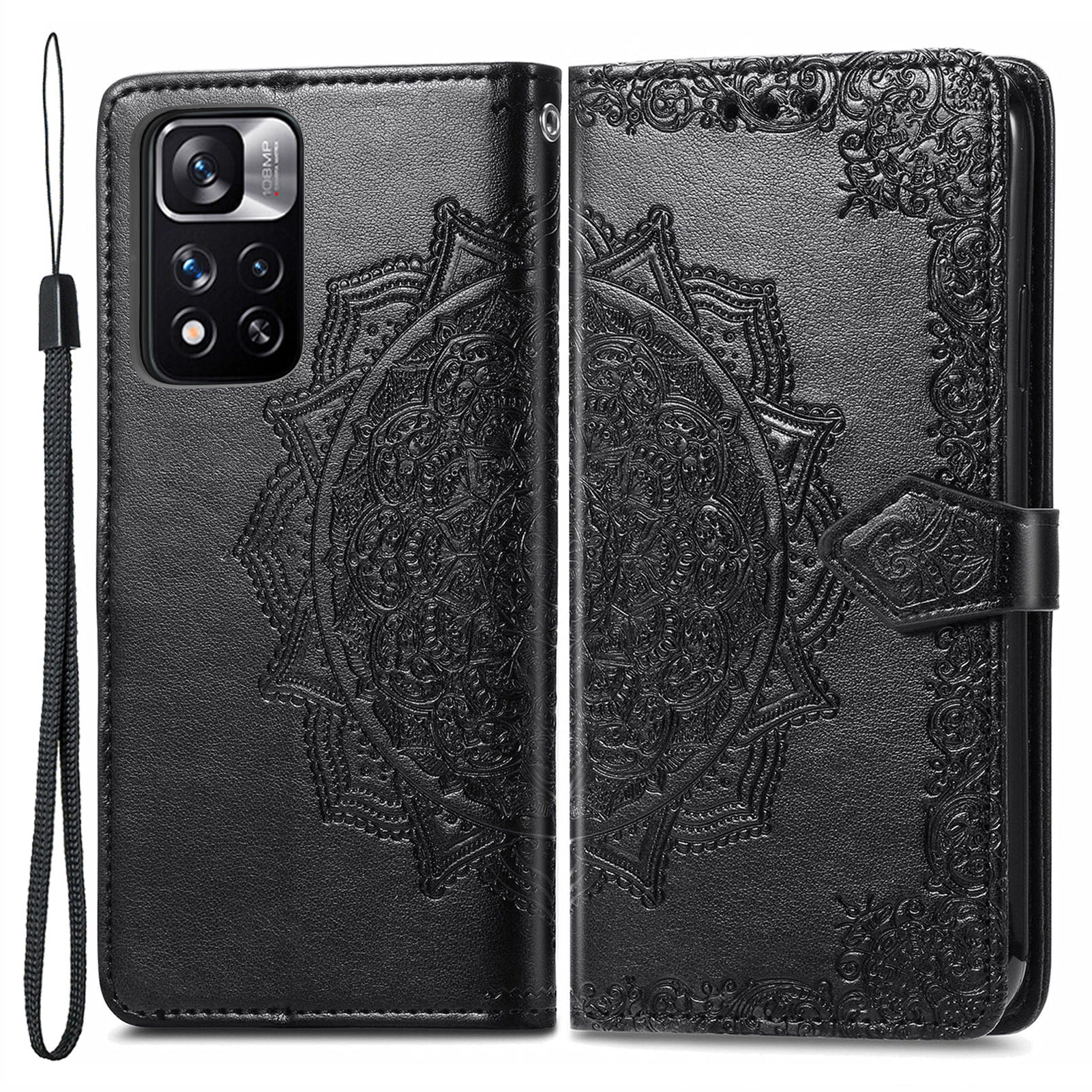 For Xiaomi Poco X4 NFC 5G Redmi Note 11 Pro 5G (China) (MediaTek) Note 11 Pro 5G Embossed Mandala Pattern Wallet Case PU Leather Stand Magnetic Flip Phone Cover with Strap