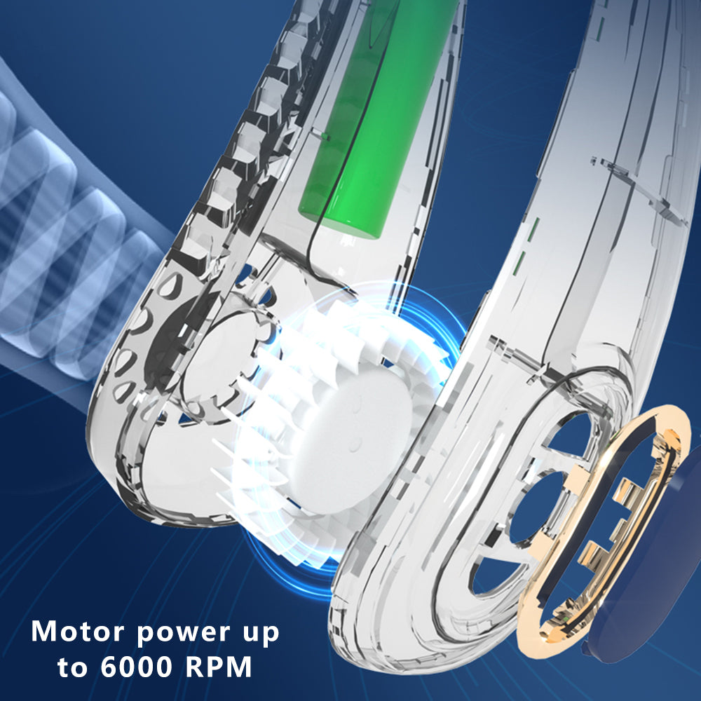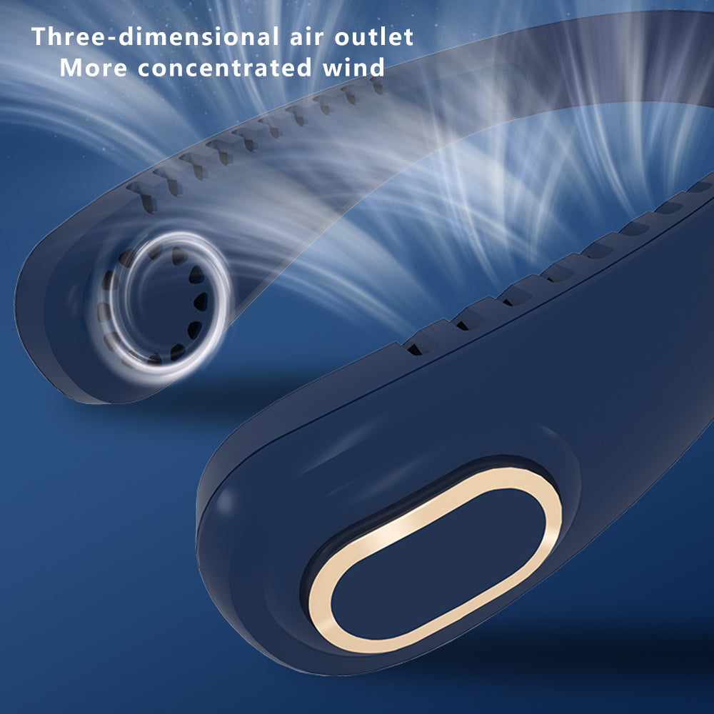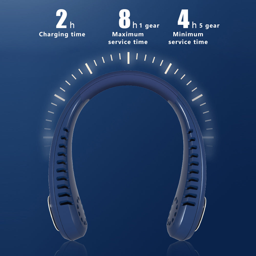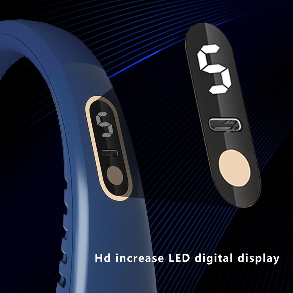 5 Gears Adjustable Neck Hanging Fan Brushless Motor Cooling Fan with Digital Display - Blue